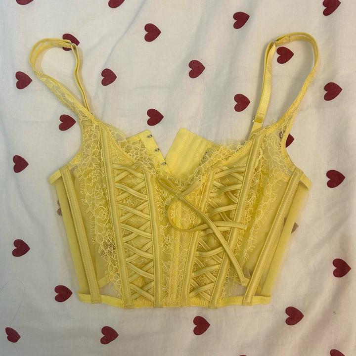 Желтый корсет Victoria’s Secret, размер примерно S. Привезли из Стамбула, официальный магазин. Состояние идеальное; надевался всего один раз на мероприятие, поверх блузки. Артикул: 485466
