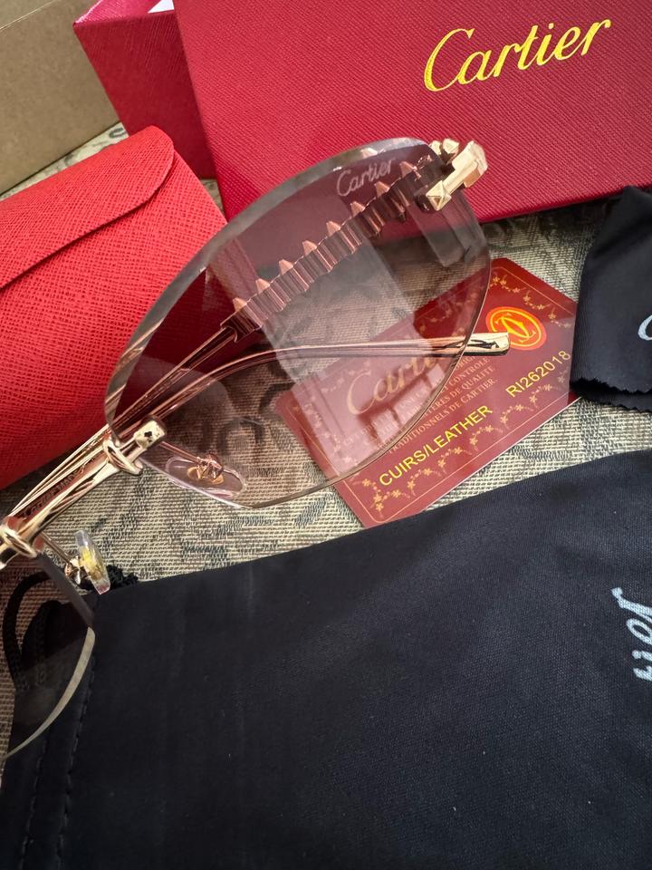 Очки Cartier реплика в лучшем качестве . Заказывала по интернету не подошла модель . Абсолютно новые . Коробка, чехол, мешочек, тряпочка все есть . Модель 2026 года . Артикул: 485514