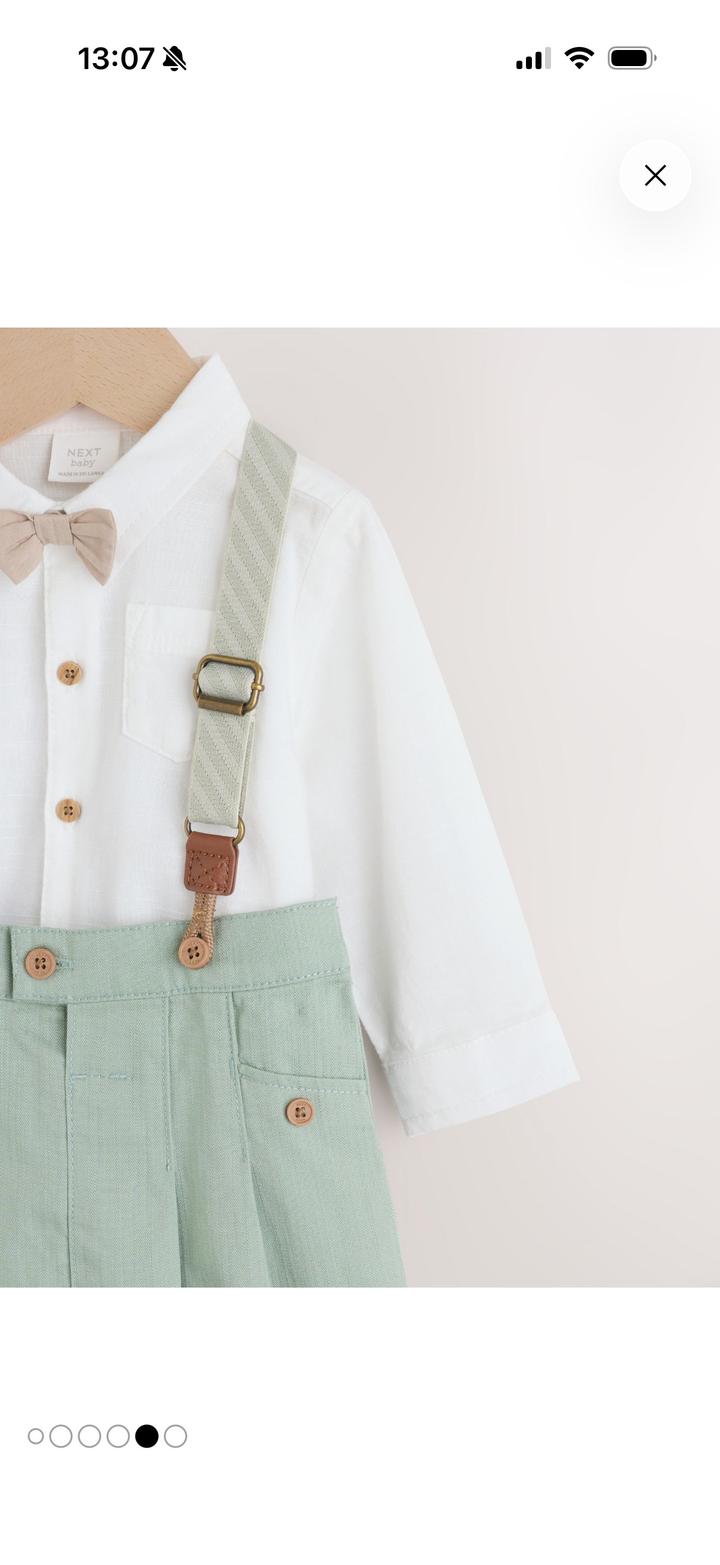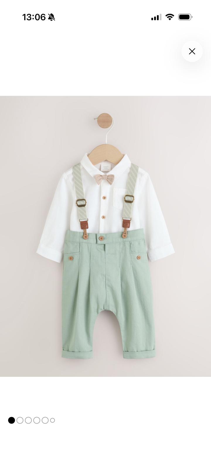 Набор для малыша от next ,покупала на годик , в идеальном состоянии . Рубашка - Боди ,штанишки , подтяжки и бабочка в наборе . Артикул: 485533