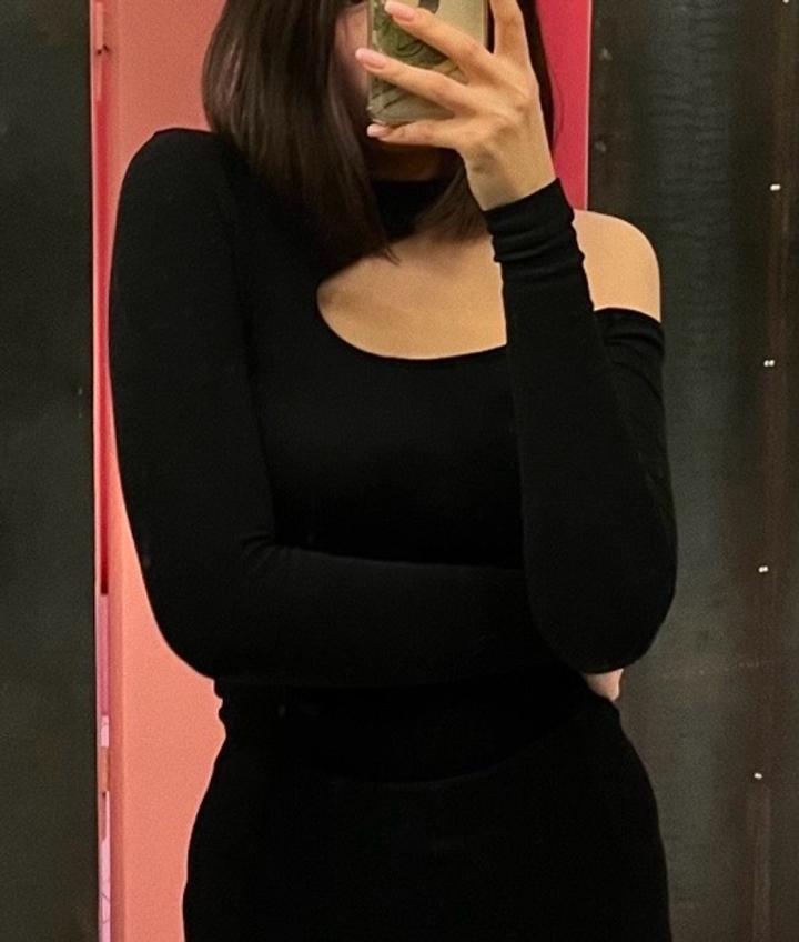 черный лонгслив с вырезом на плече Артикул: 485588