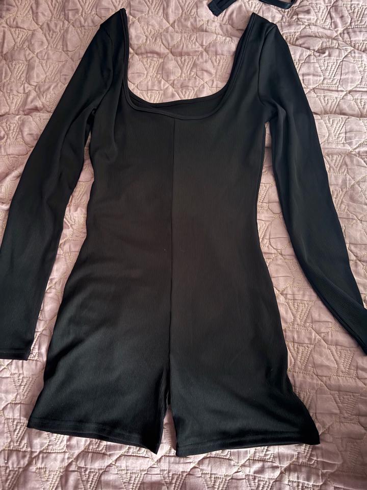 Слитный черный комбинезон, с глубоким декольте Артикул: 485742
