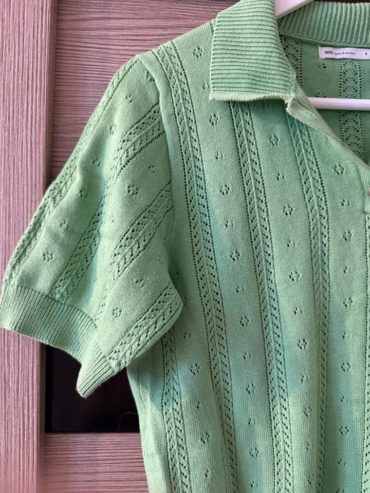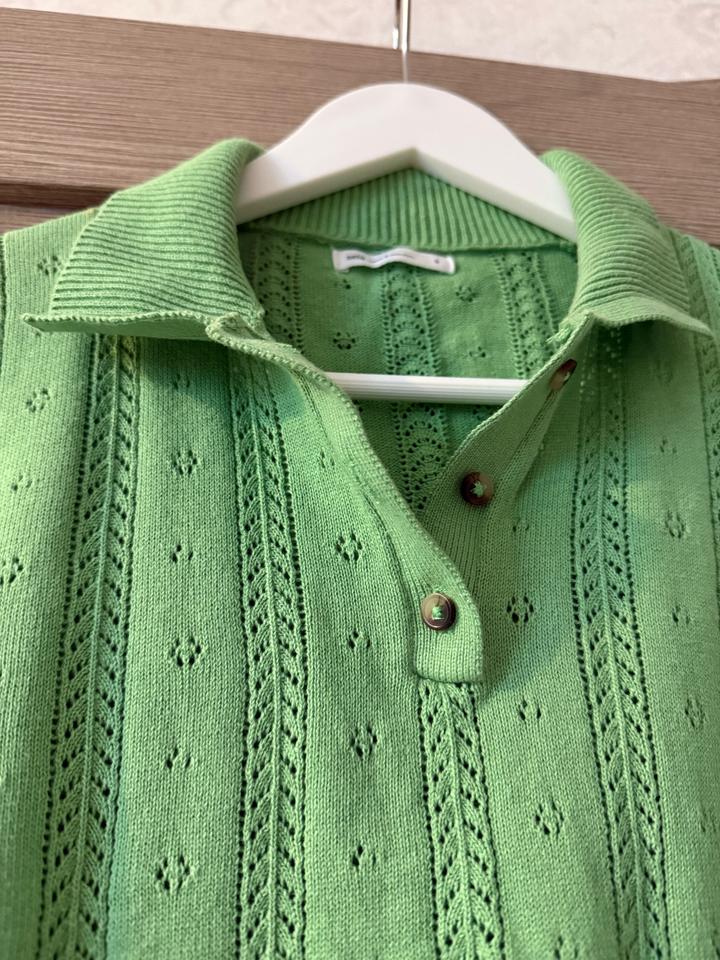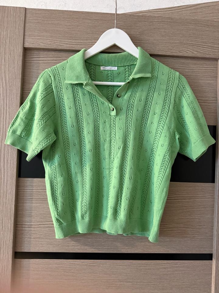 Ярко-зелёная футболка с воротником-поло из ажурного трикотажа Причина продажи: разбираю гардероб перед переездом Артикул: 485753