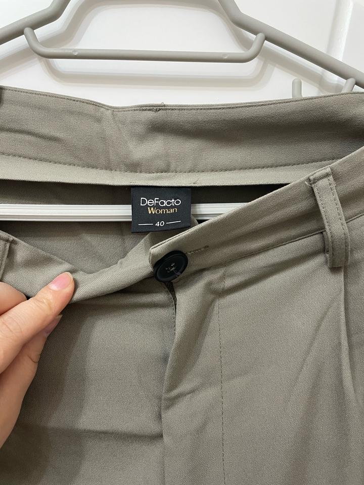 брюки Defacto в универсальном цвете хаки. Размер 40, хорошо сидят на рост около 160 см. Носились всего 2–3 раза, состояние очень хорошее. Без пятен и повреждений. Артикул: 485878