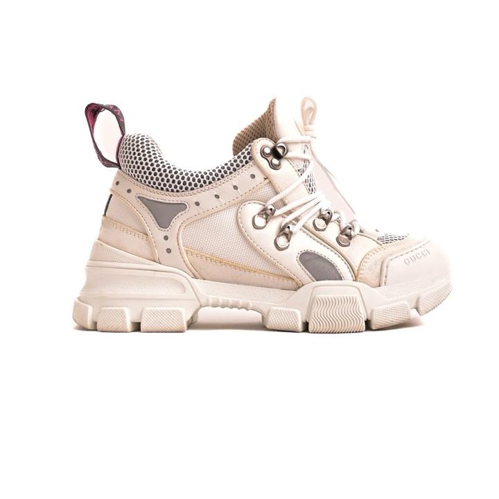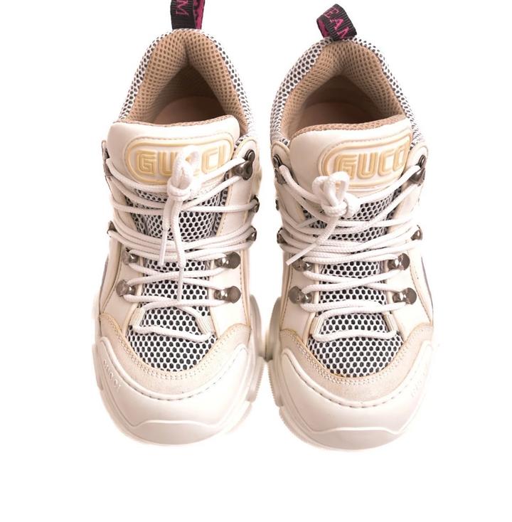 Белые кроссовки Gucci Flashtrek представляют собой стильное сочетание натуральной кожи, сетчатых материалов и замши Кожа 90% Отличное состояние Размер 36,5 Оригинал Артикул: 486223