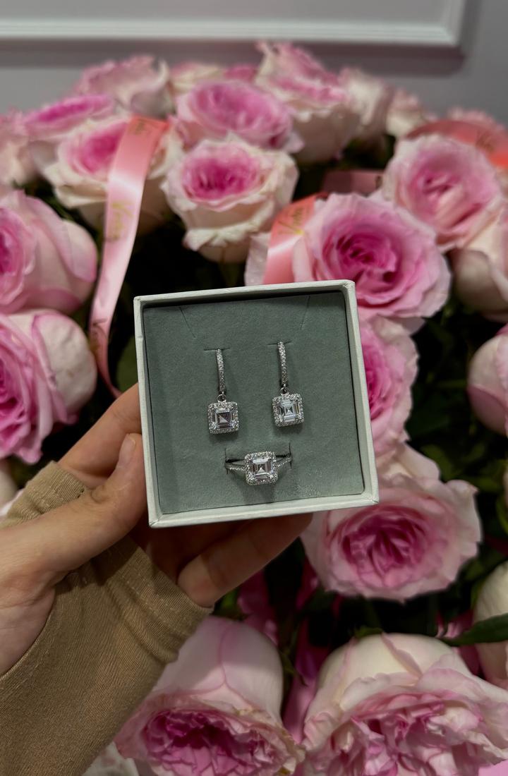 Нежный и утонченный набор из серебра 925 пробы. Набор состоит из висячих серег и нежного колечка. Со вставками фианитов, дизайн под бриллиант. Размер кольца - 18.5 Артикул: 486234
