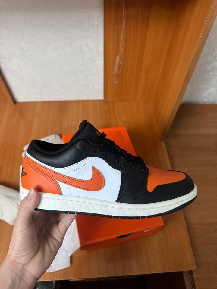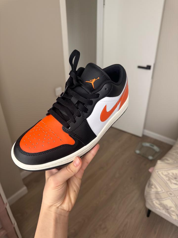 Nike Air Jordan 1 Low — стильные и универсальные кроссовки в яркой черно-бело-оранжевой расцветке. Модель выполнена из качественной кожи, благодаря чему кроссовки прочные, удобные и хорошо держат форму. • Оригинальный дизайн Nike • Удобная низкая посадка • Качественный кожаный верх • Легкая и комфортная подошва • Отлично сочетаются с джинсами, спортивной и повседневной одеждой Состояние: новое Размер: US 8.5 , EU 42, размер стопы 26,5 Артикул: 486417