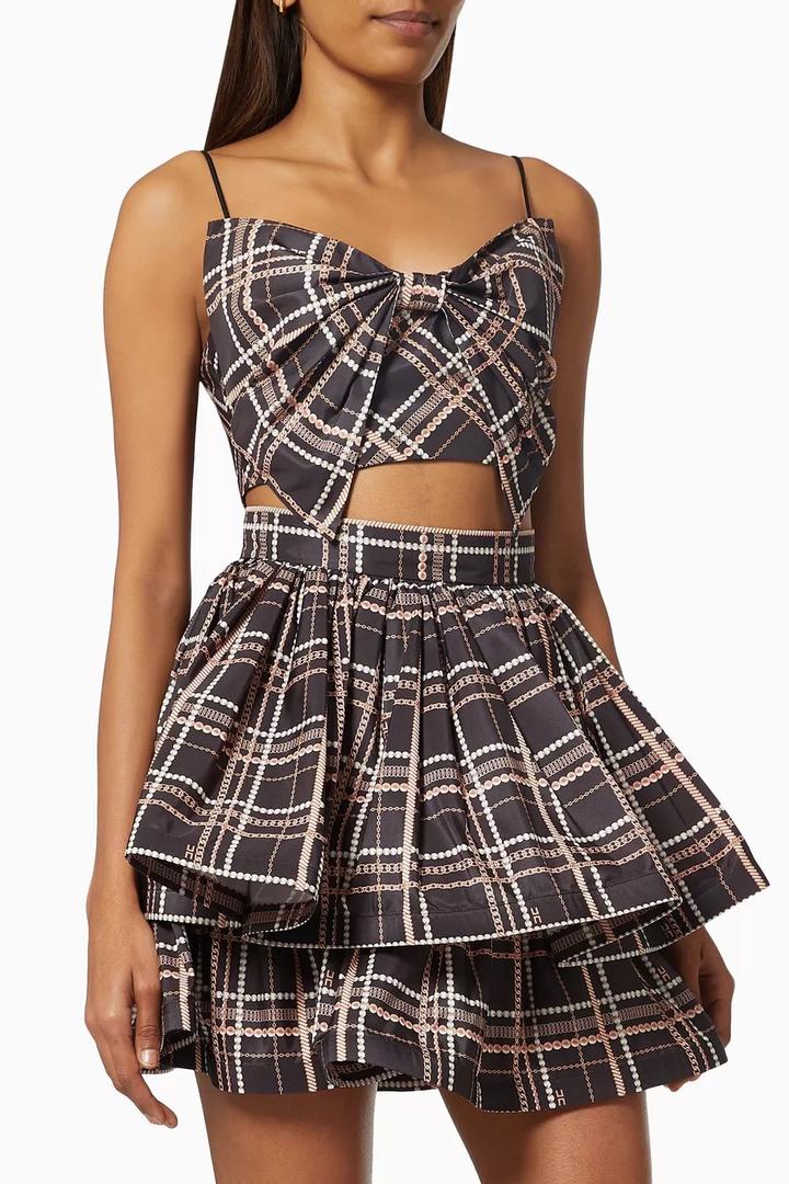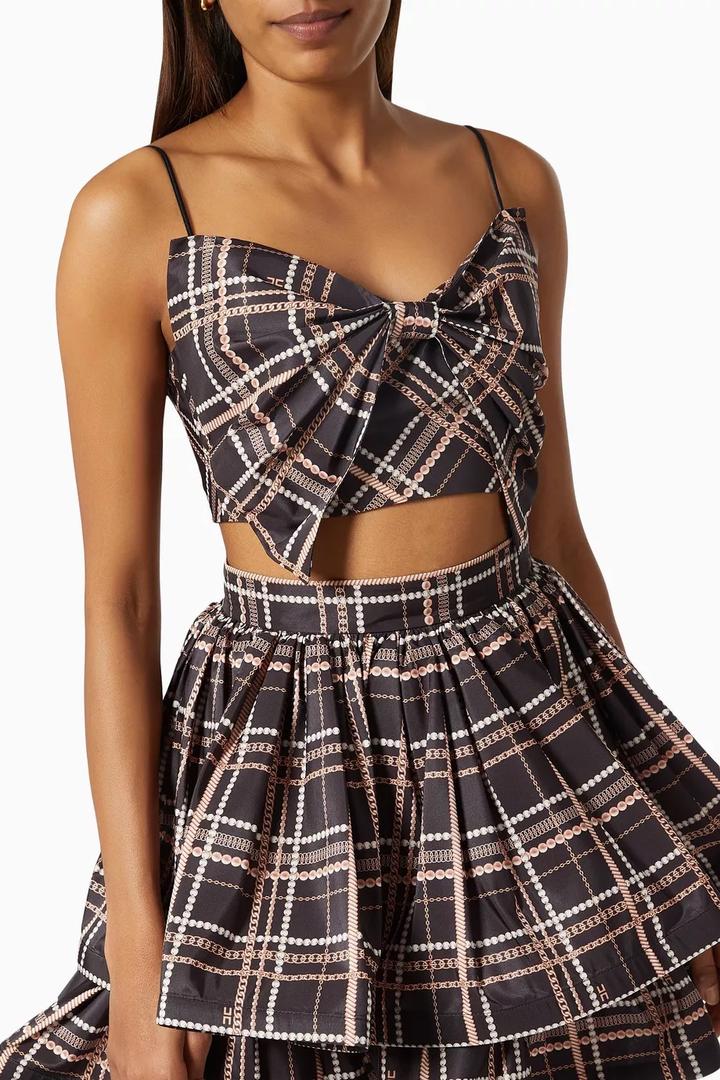 Кроп топ с бантом и юбка украшен фирменным принтом дизайнера в виде цепочного узора. Made in Italy Оригинал Артикул: 486452
