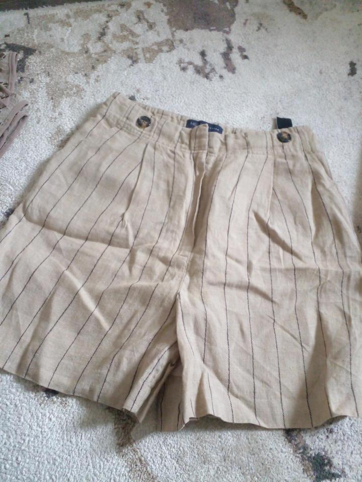 Кружевная бежевая юбка• Летние шорты в полоскуS