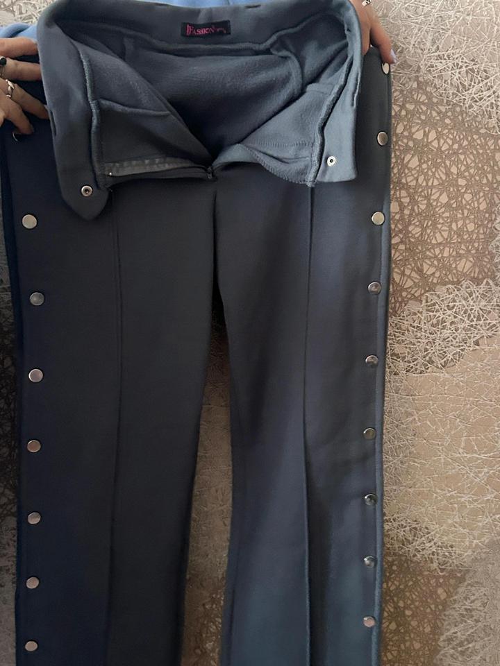 Теплые брюки с интересным дизайном,с боку на кнопках,полностью растягивается.размер 44-46.к низу расклеенные. Артикул: 486652