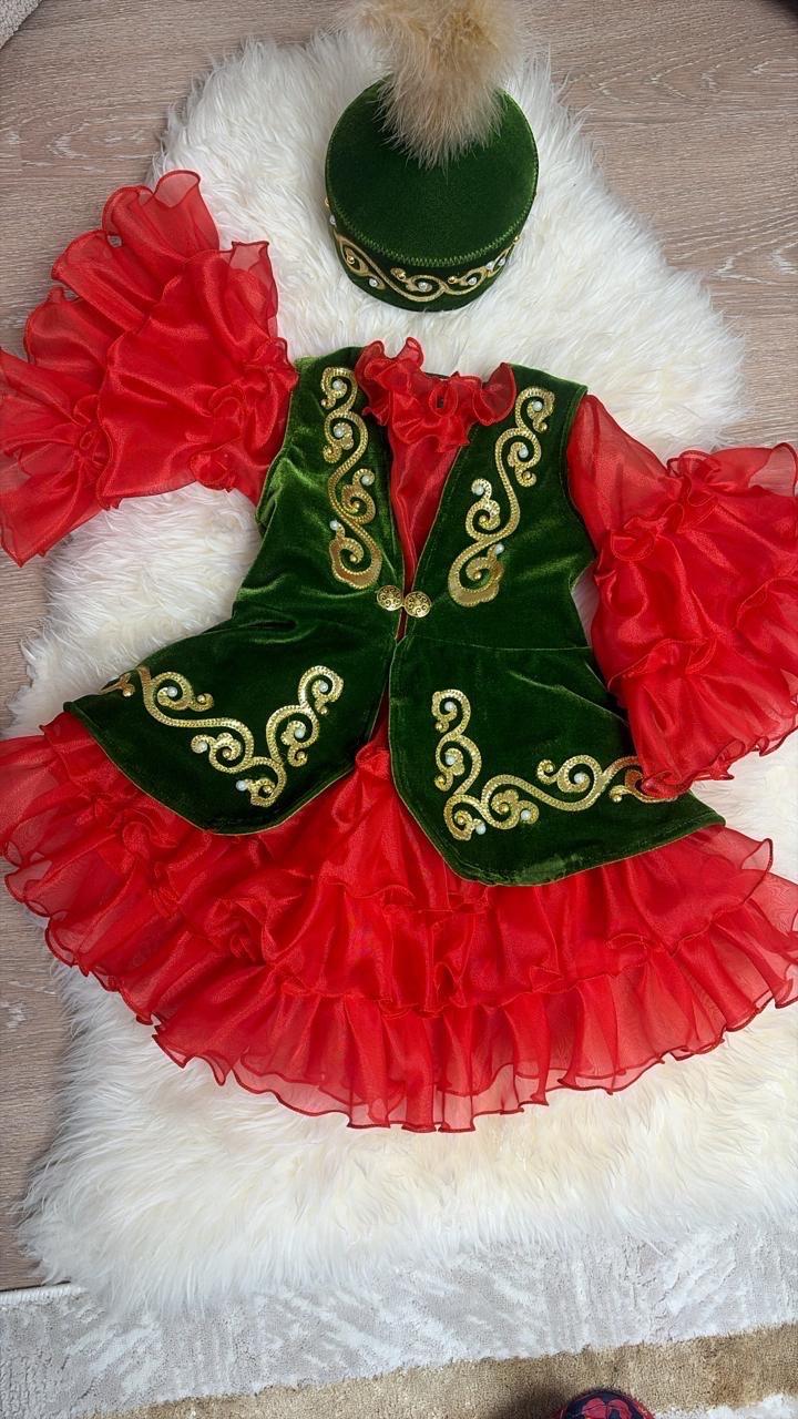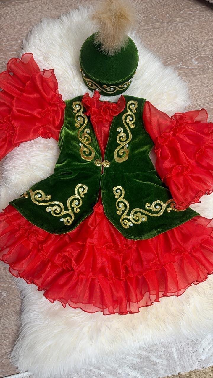 Продаю очаровательный детский костюм, выполненный в лучших традициях казахского народного стиля. Покупали для утренника своей дочке, но, к сожалению, размер не подошел. Костюм примеряли один раз. Наряд создан для маленькой принцессы 3-4 лет и идеально подойдет для утренников, тематических фотосессий, празднования Наурыза или знакомства ребенка с культурой Казахстана. Артикул: 486661