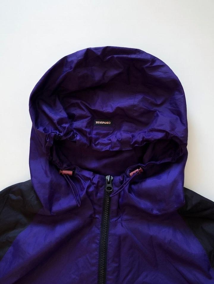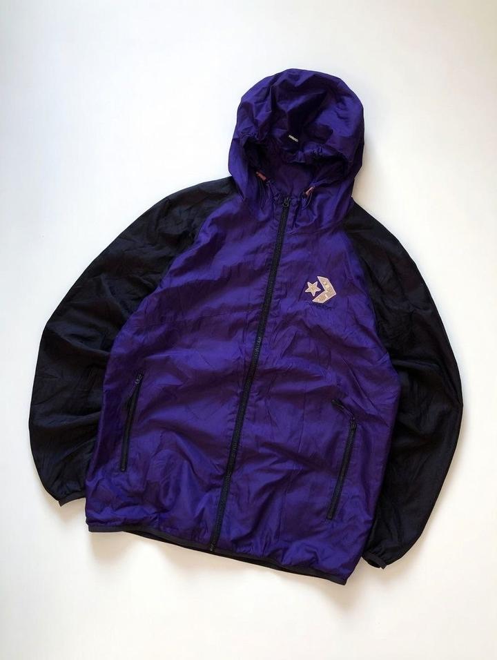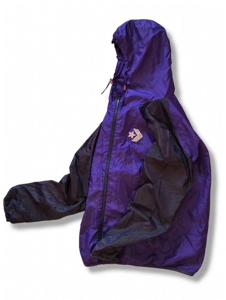Лёгкая ветровка Converse (фиолетово-чёрная, нейлон, водоотталкивающая, с капюшоном на регулируемых шнурках). Размер M — подойдёт на рост до 173 см Состояние отличное — без дефектов, пятен, разрывов, молния и все застёжки работают идеально, выглядит почти как новая. Цена: 15 000 тенге. Стильная, лёгкая, удобная для весны/осени/спорта/улицы Артикул: 486714