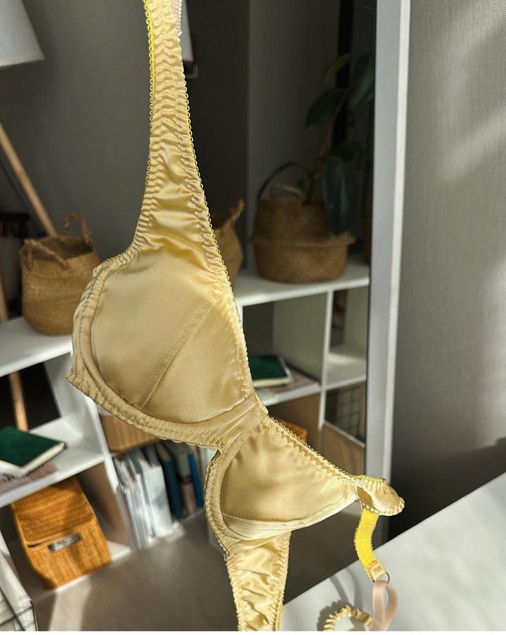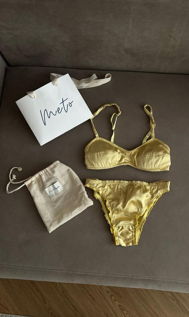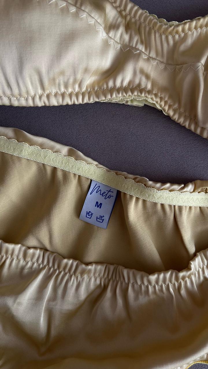 Новое нижнее белье из шелка , пыльник и фирменный пакет имеется. Можно в подарок . Бюстгальтер без косточек (75B) , мягкий , удобный, имеются чашечки, можно их убирать. Трусики размер M. Артикул: 486789