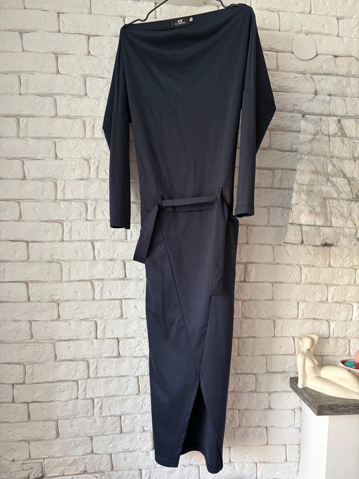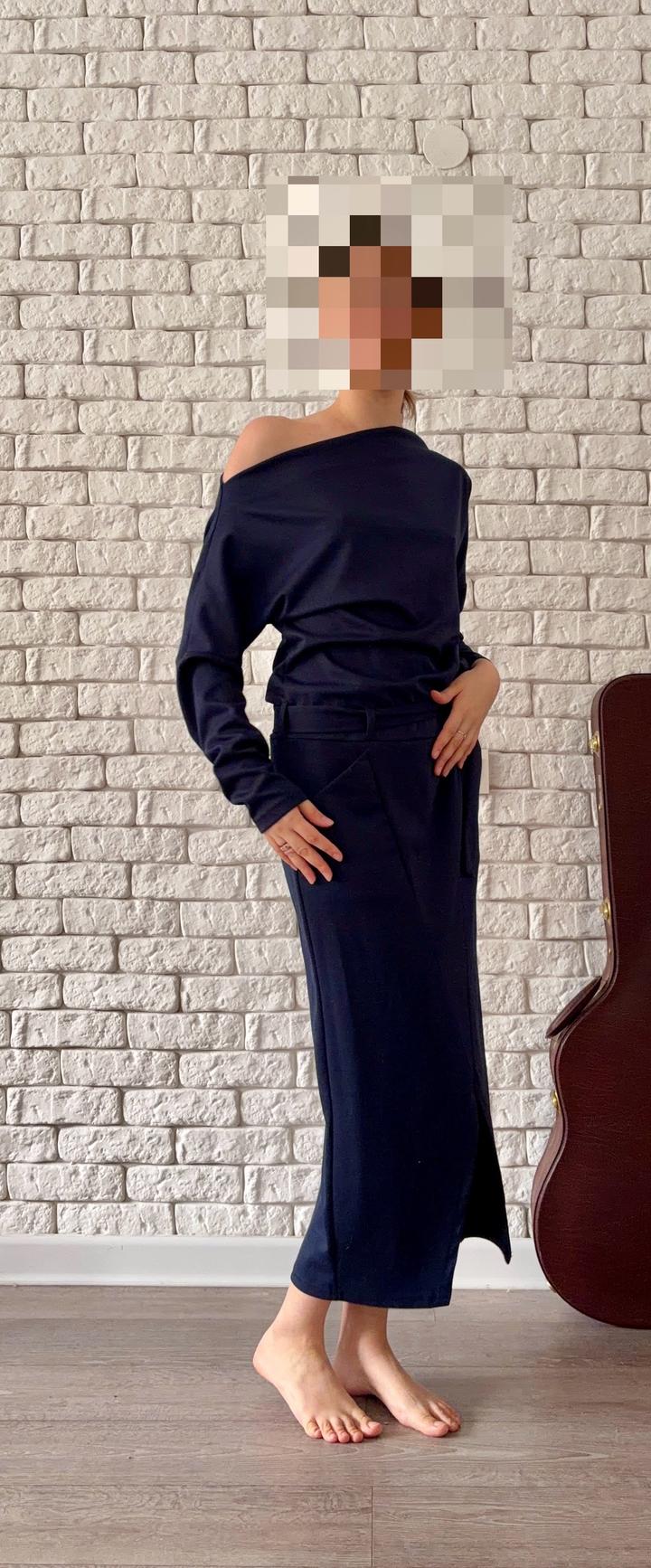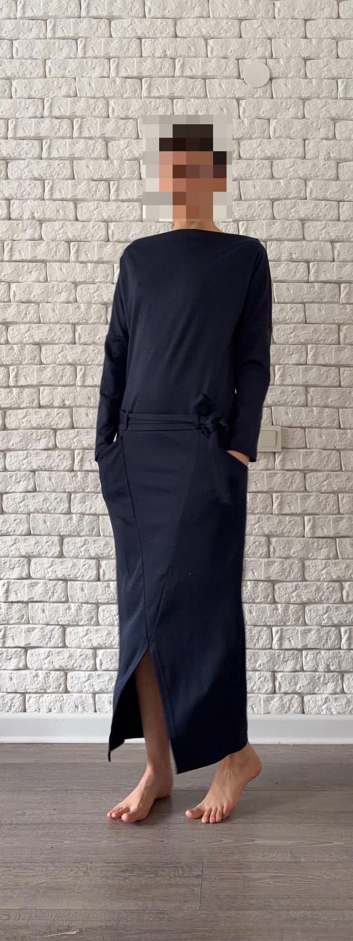 Элегантное темно-синее платье от российского бренда. Купила давно, потому что красивое, но так ни разу и не надела, потому что некуда :) Вырез широкий, можно спустить на оба плеча, на одно плечо или сделать хомут. Есть пояс - можно на талии зафиксировать или сделать заниженную линию талии. КАРМАНЫ! Это же мечта :) Мой рост 172см (ткань тянется) Новое стоит 25к на wb Артикул: 486888