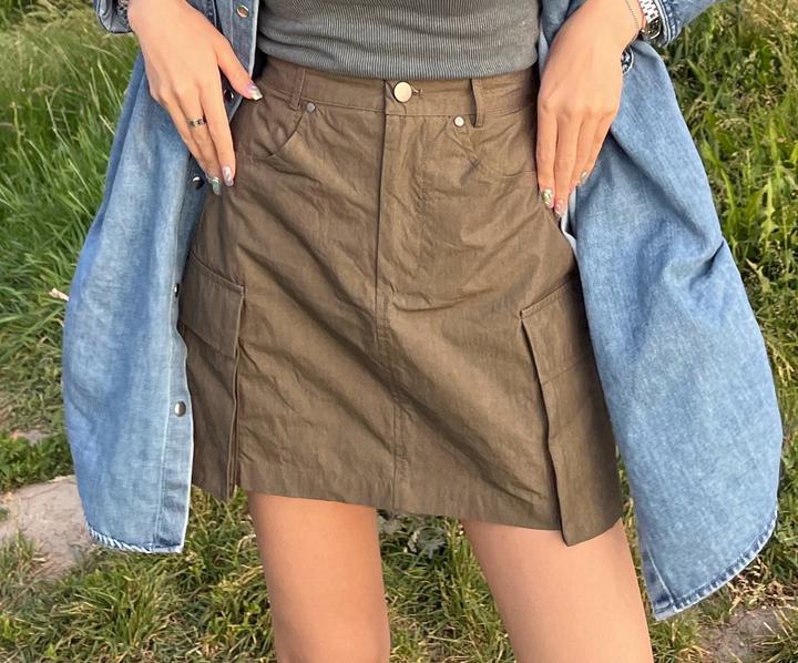 Юбка хаки с большими карманами. Короткая, но внутри есть шортики. На резинке подойдет на размер xs-s Артикул: 486889