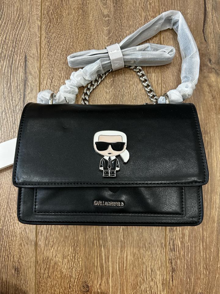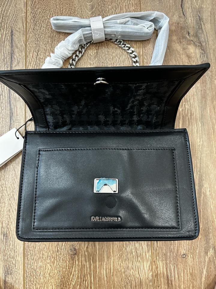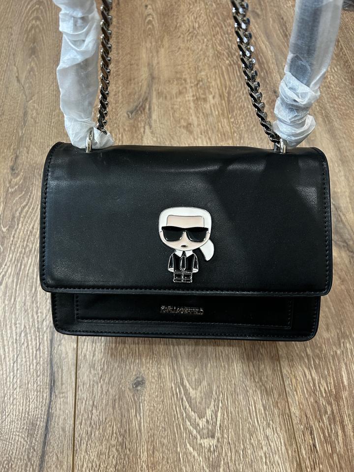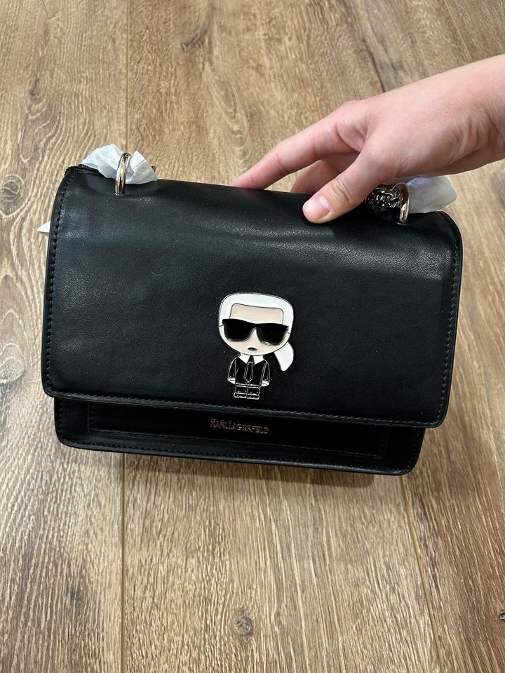 Оригинальная сумка Карл Лагерфельд Есть незначительный дефект, на фото можно увидеть след от застежки, и надпись немного кривая, особо не заметно. Цена снижена из-за брака. В целом сумка отличная, вместительная, с длинным ремешком. Артикул: 486947
