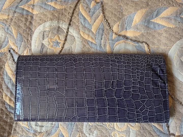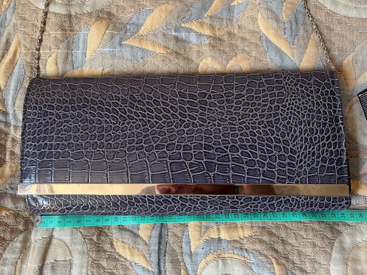 На обратной стороне есть легкая морщинка на коже, можете увидеть на фото Фото с сантиметром - чтобы показать вам размер, она больше чем стандартные клатчи. Можно через плечо носить, цепочка позволяет перекинуть Артикул: 486981