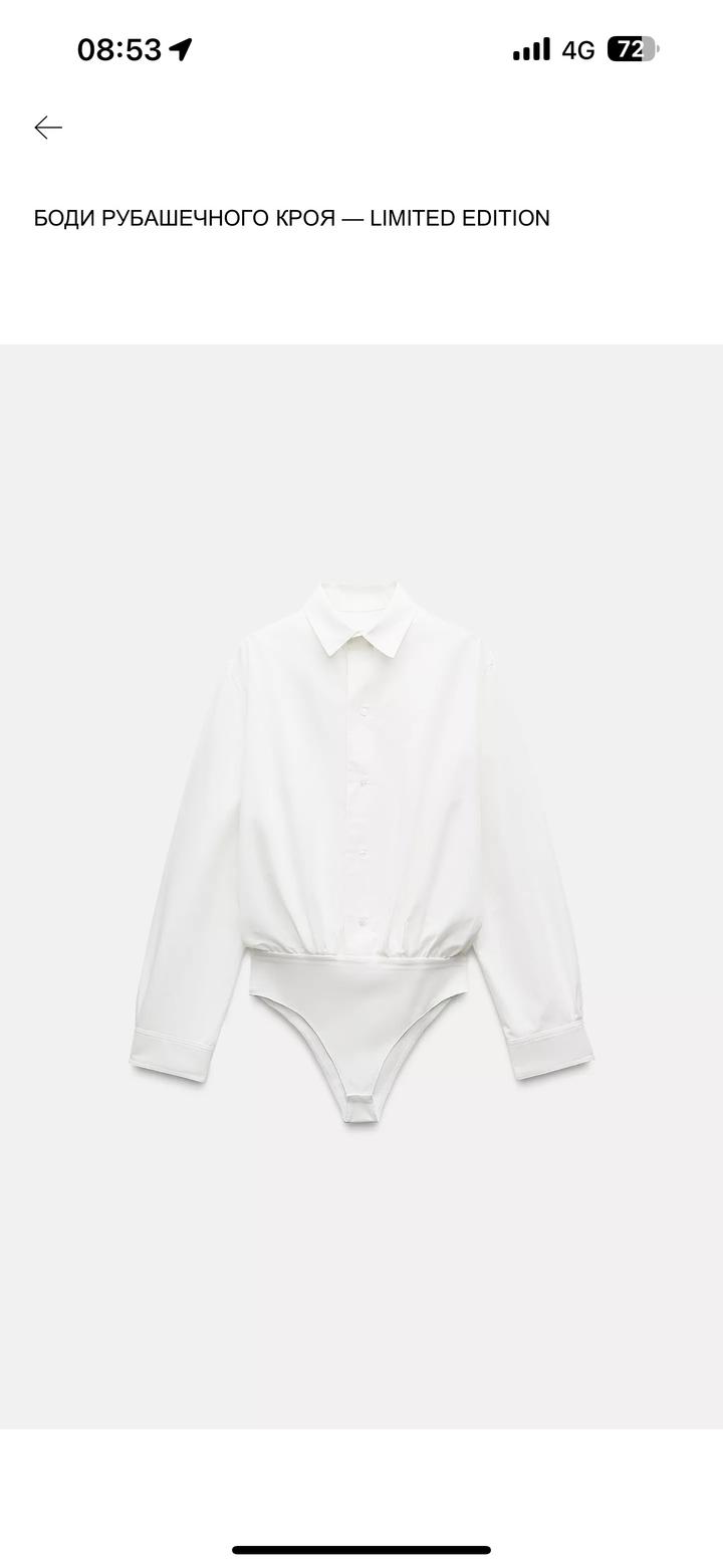 Боди-рубашка ZARA LIMITED edition, s размер, новая без бирки, не носилась. Не кипильно белый цвет Артикул: 487041