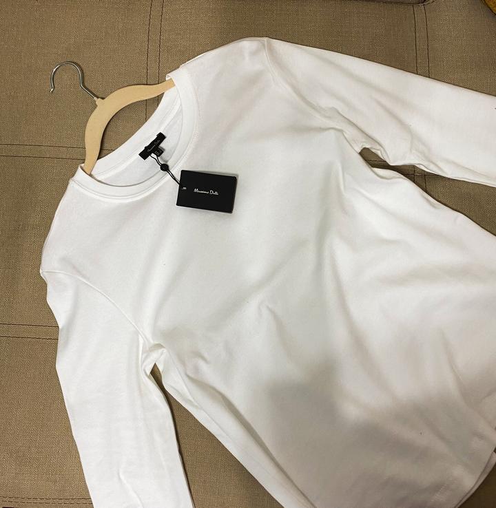 Абсолютно новый белый лонгслив под Massimo Dutti.Материал 100% хлопок. Производство Турция.Заказывала через байере.К телу очень приятный,мягкий,сама ношу уже третий год.Качество отличное.Подойдут на размер S и M. Артикул: 487050