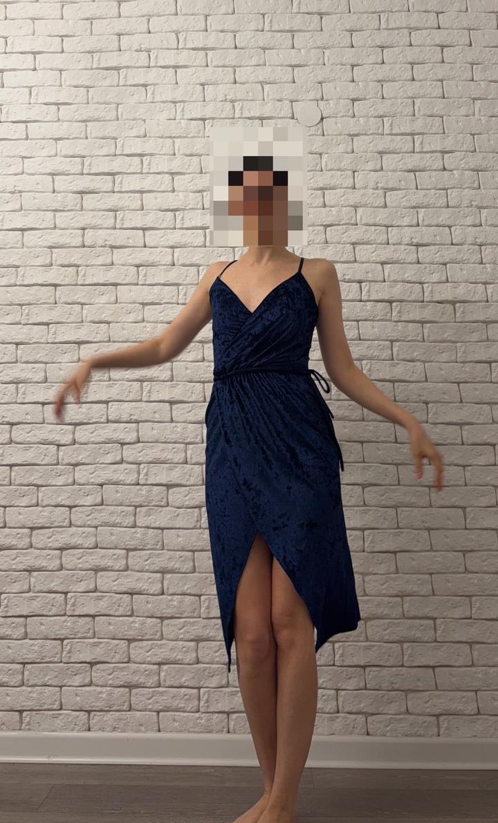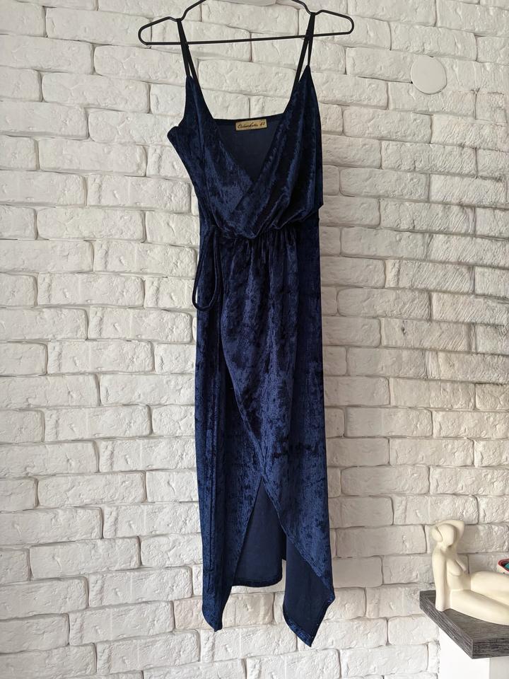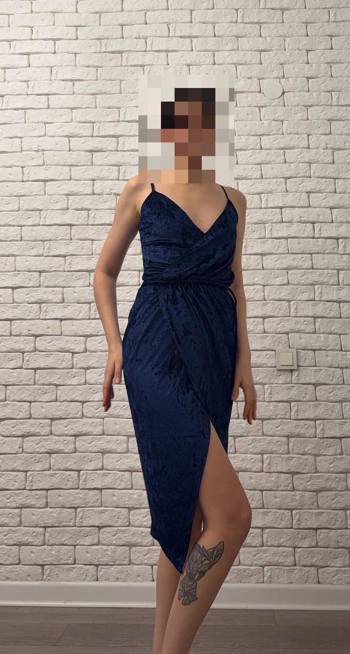 Темно-синее платье под велюрS
