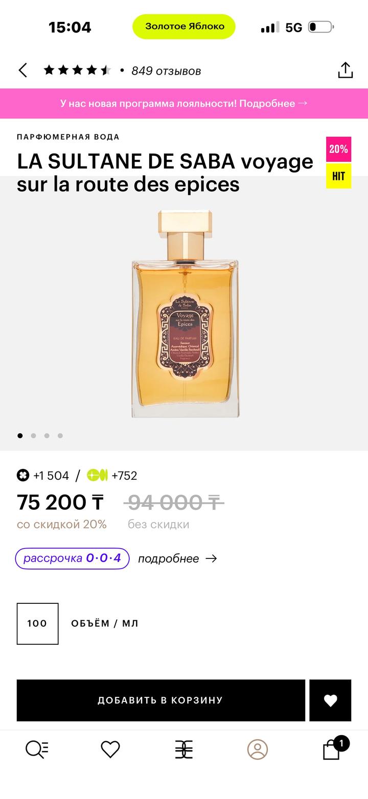 Парфюмерная вода La Sultane de Saba "Voyage Sur La Route Des Epices" окутывает чарующим шлейфом пряно-древесных аккордов и переносит вас в мир гармонии, где внутреннее состояние перекликается с утончённой атмосферой Востока. Подарили на 8 марта , запечатан! Оригинал Артикул: 487077