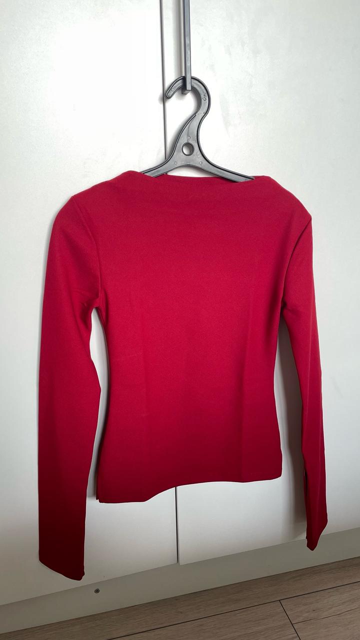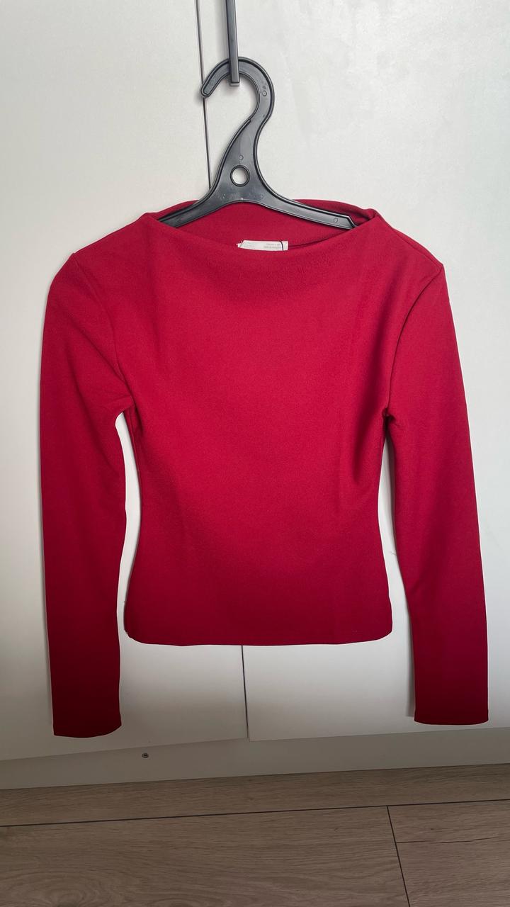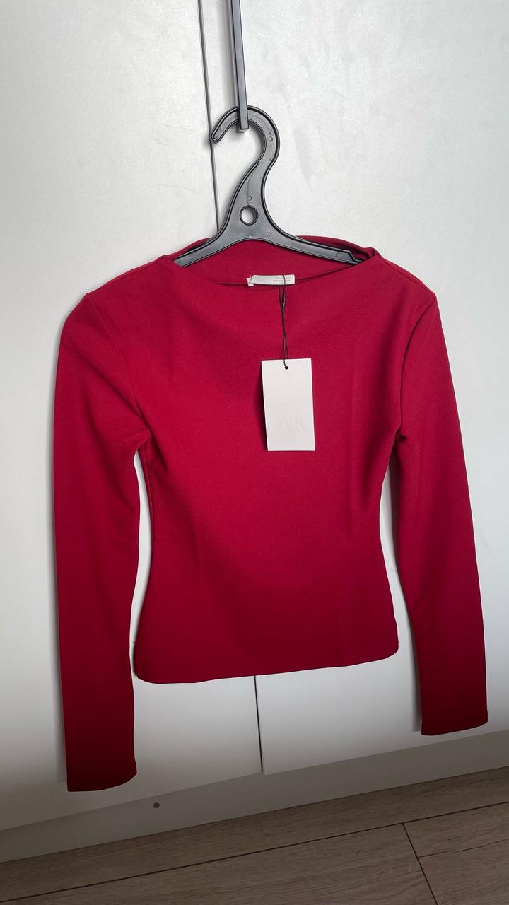 Бордовый лонгслив Zara, воротник лодочка. Идеально подойдет на размер xs ( маркирован s). Заказывала из Португалии, оказался мал. Ткань плотная, не знаю, как называется, но точно не хлопок. На рукавах рабочие замочки. Артикул: 487097