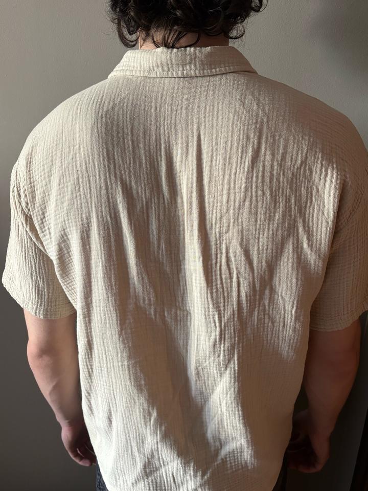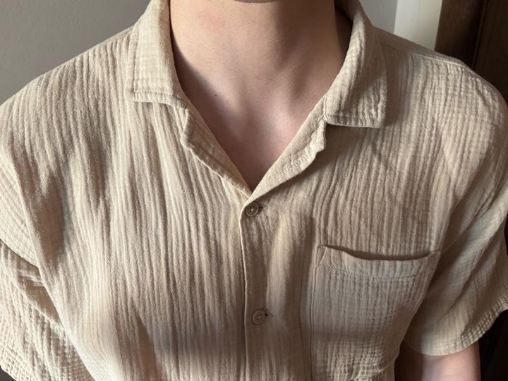 бежевая рубашка с короткими рукавамиM