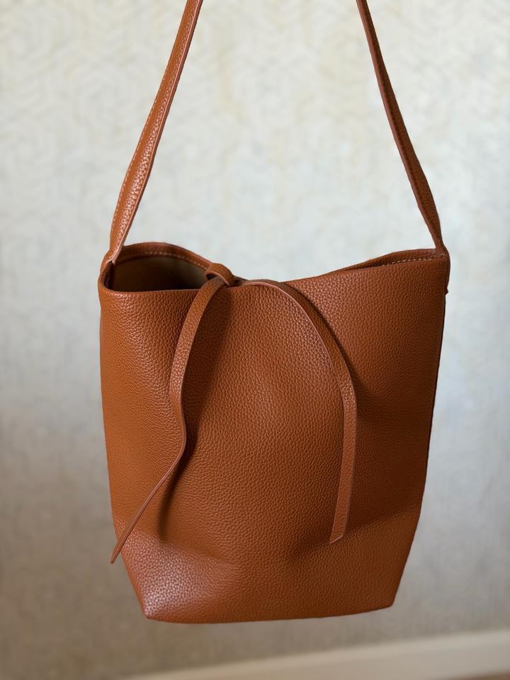 Сумка-ведро кирпичного цвета , кожа-