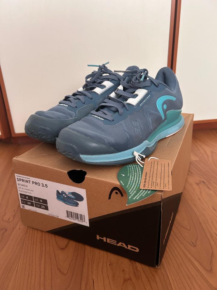 Кроссовки теннисные для покрытия хард, с коробкой, HEAD Sprint Pro 3.5, женские, размер 39 (25 см). Цвет бирюзовый. С технологией охлаждения HEAD Cooling System. Состояние отличное,только есть дефект на одном шнурке Артикул: 487211