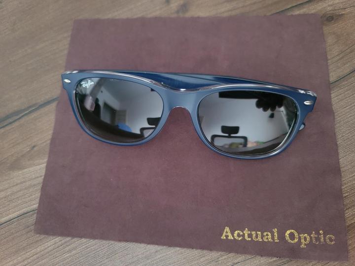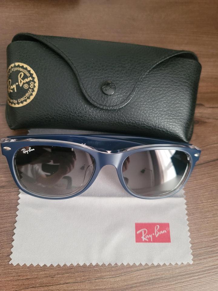 Винтажные солнцезащитные очки Ray-Ban RB2132 New Wayfarer синего цвета, на маленькое или среднее лицо, унисекс. Почти не носились, следы носки есть только на внутренних сторонах дужек. Покупались в оригинальном магазине Артикул: 487224