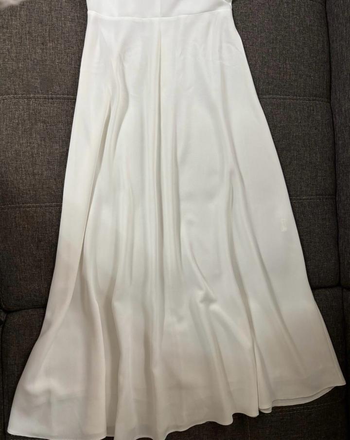 SI Design: белое макси платье Минималистичное выпускное платье в молочном(айвори) оттенке. А силуэт, закрытая горловина и рукава-крылья (flutter sleeves), регланный крой. Платье красиво струится при движении и визуально вытягивает силуэт. Потайная молния на спине, аккуратная посадка по талии, лёгкая плотная ткань, хорошо держит форму. Подойдёт для выпускного, официальных мероприятий, фотосессий , вечерних событий Артикул: 487274