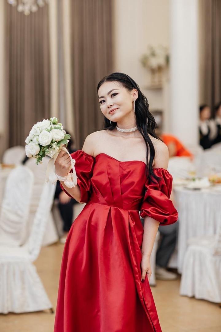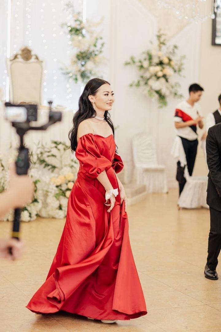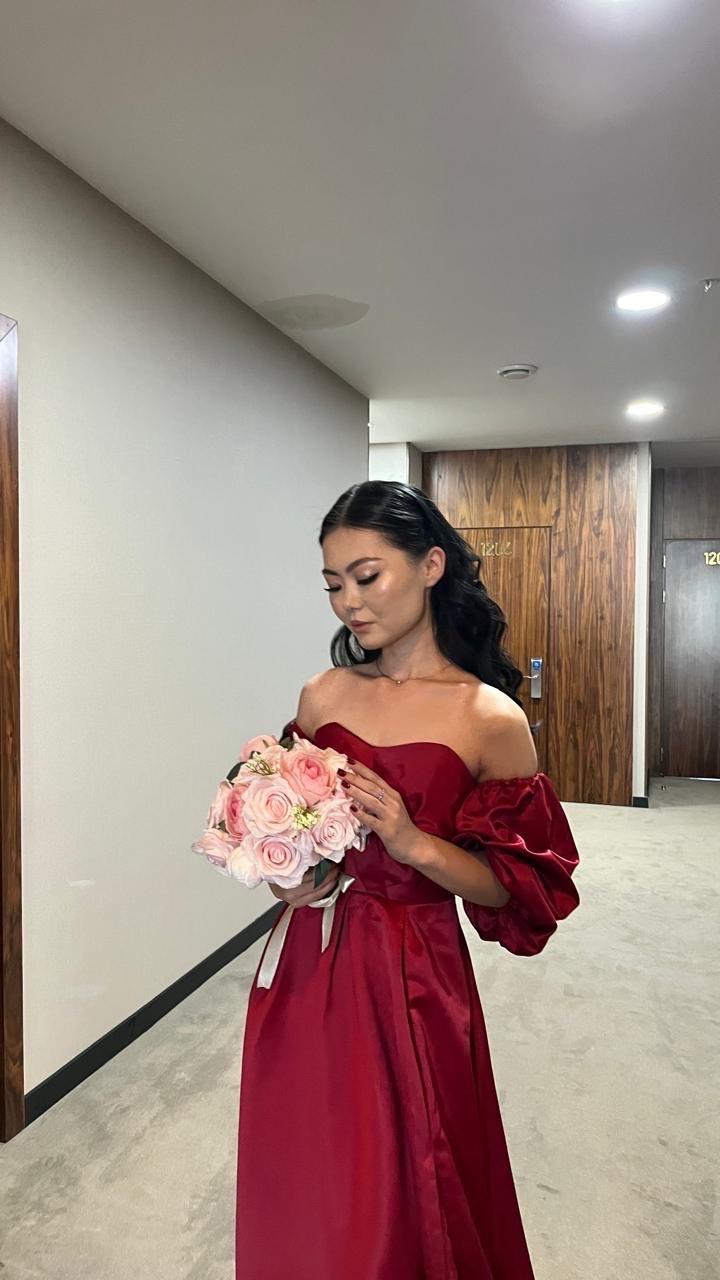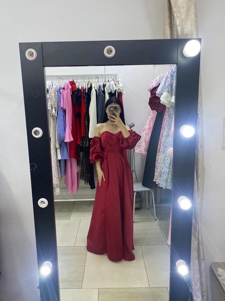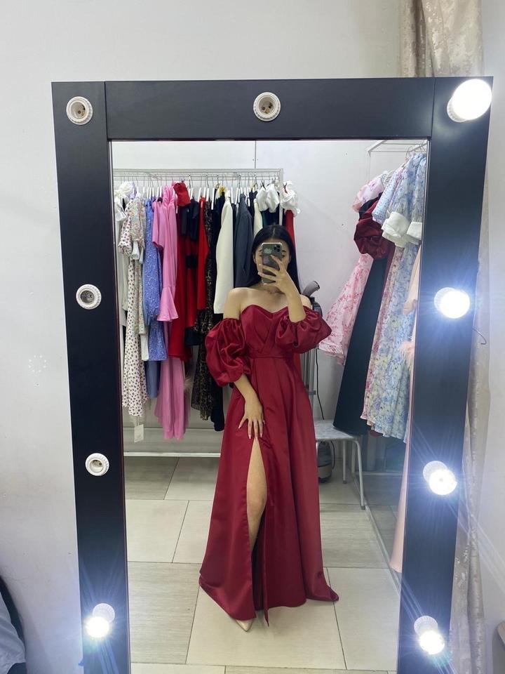 красное атласное платьеS/M