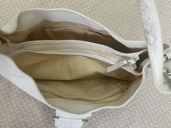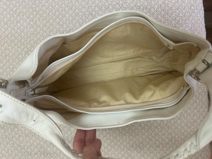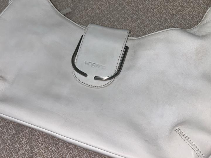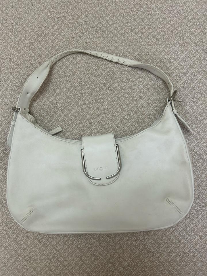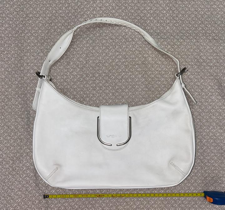 продам вместительную сумочку багет японского бренда ungaro. материал - бычья кожа. состояние - хорошее, так как кожа светлая есть небольшие загрязнения (на фото показаны), но думаю мыльной водой все отойдет. дыр или потертостей нет. ремешок регулируется с обеих сторон, фурнитура хорошая. внутри три отделения. размеры показаны на фото. Артикул: 487305