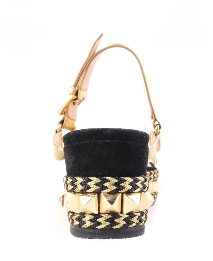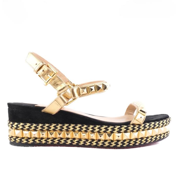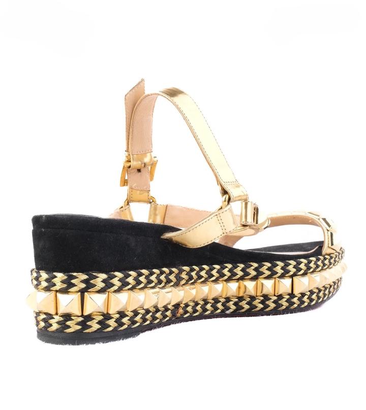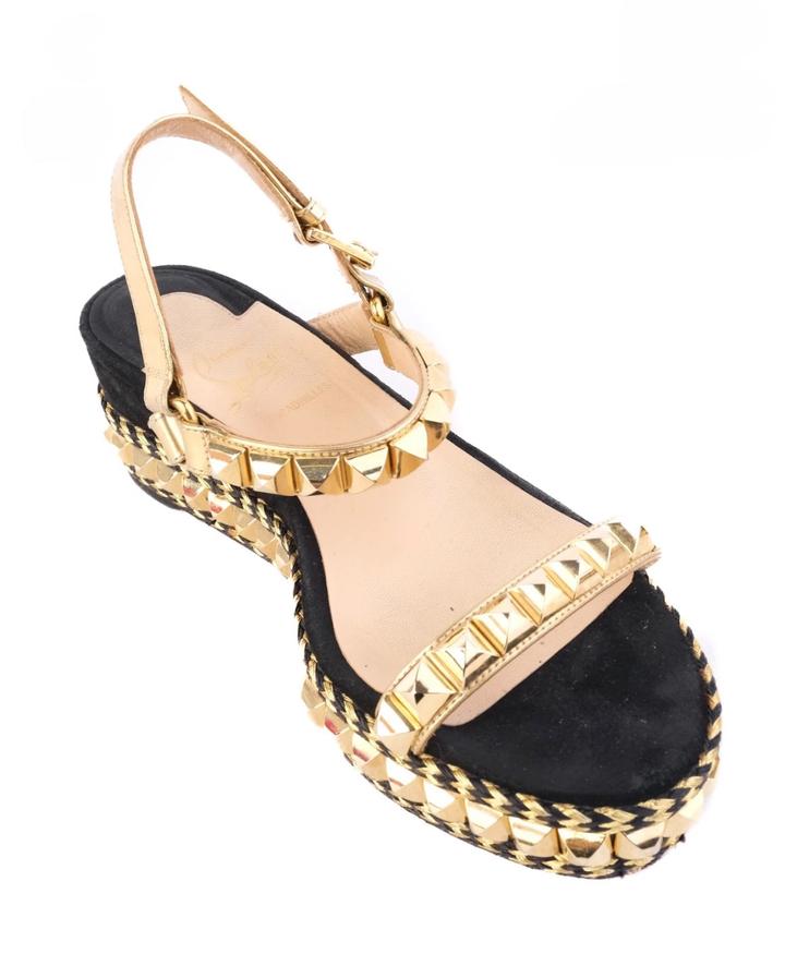 Женские сандалии Christian Louboutin с заклепками на танкетке на подошве золотистые. Состояние отличное Есть пыльник Оригинал Артикул: 487329