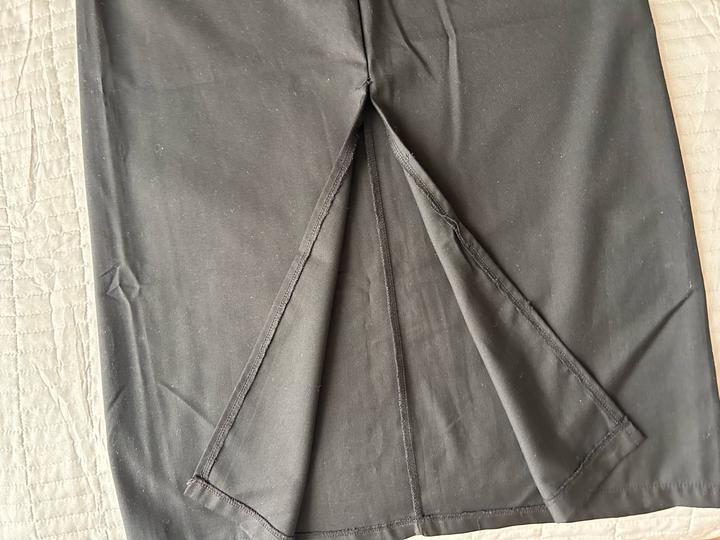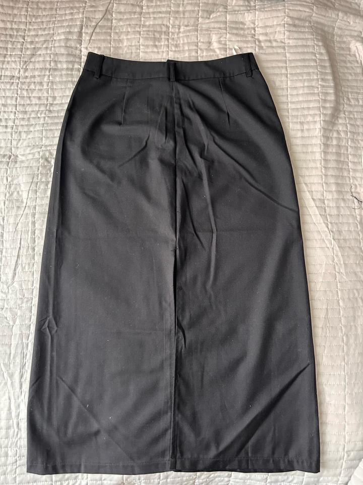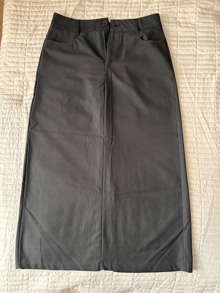 классическая черная юбка слегка зауженного кроя длины макси, наличие шлевок для ремня, передние карманы и центральный шов. снабжены разрезом (сзади) для удобства при ходьбе. Требуется небольшой ремонт по центральному шву (немного разошлась строчка внизу) Артикул: 487334