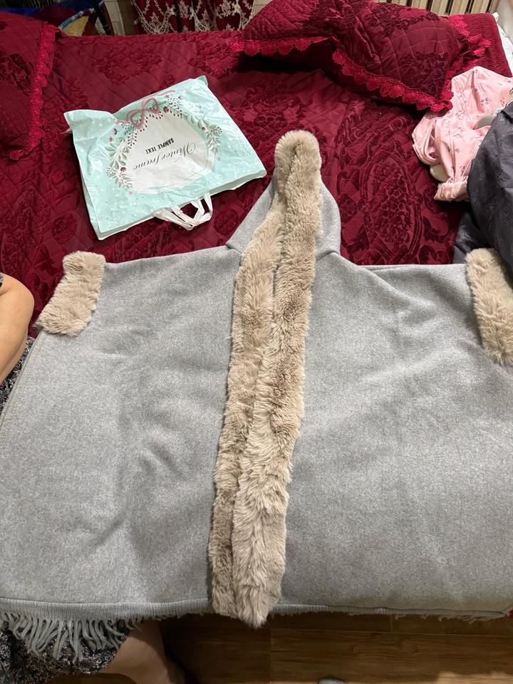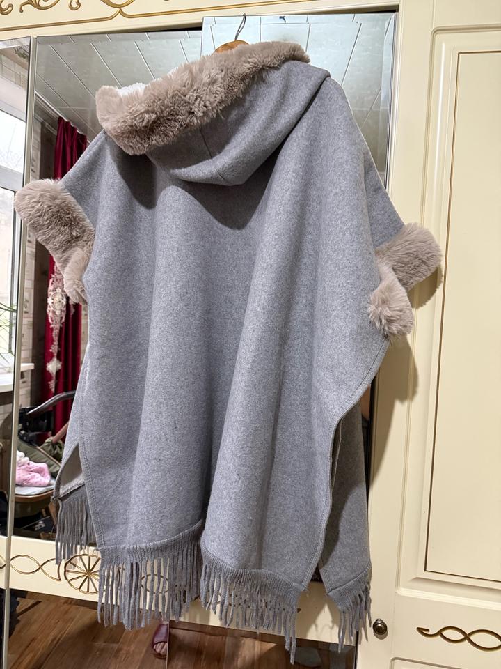Шерстяное пончо с отделкой из искусственного меха Артикул: 487355