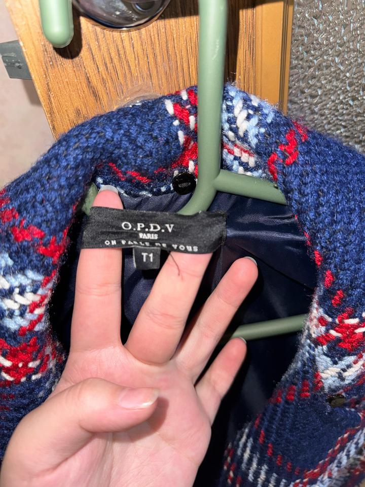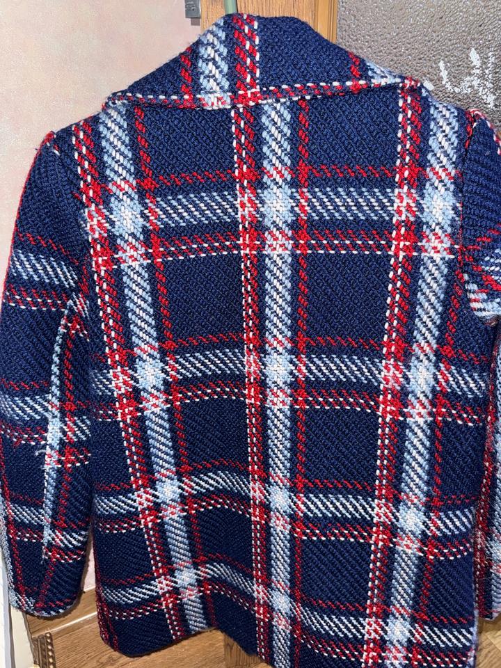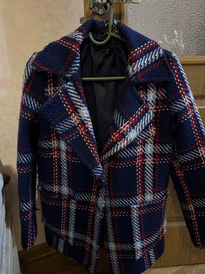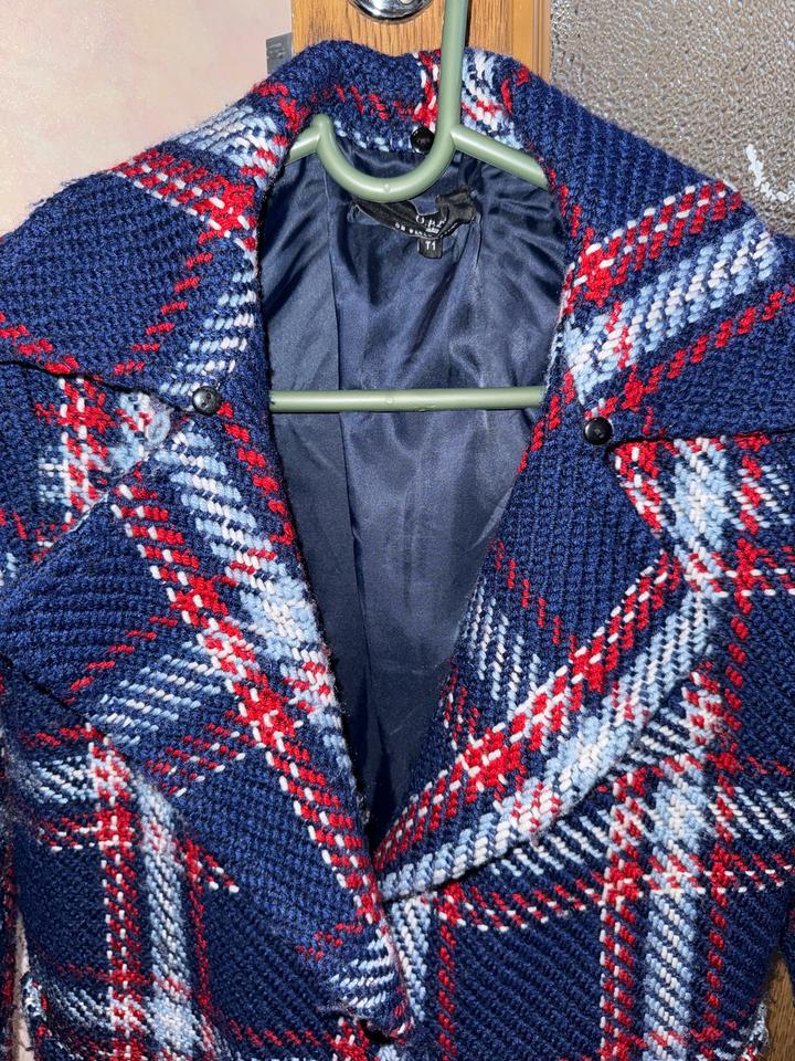 Модное женское пальто в клетку тёмно-синего цвета с красно-белым узором. Модель с широким воротником и пуговицами, выглядит очень стильно и актуально. Плотная ткань, хорошо держит форму и отлично подойдёт для прохладной погоды весной или осенью. Удобная посадка, можно сочетать с джинсами, платьями и классическими брюками. Состояние хорошее но местами немного вышел ворс Артикул: 487393