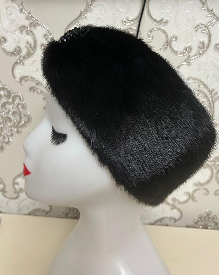 Повязка из натурального меха норки, 58 размер, было сшито на заказ. Можно примерить в городе Павлодар. Черного цвета Шапка, головной убор Артикул: 487435