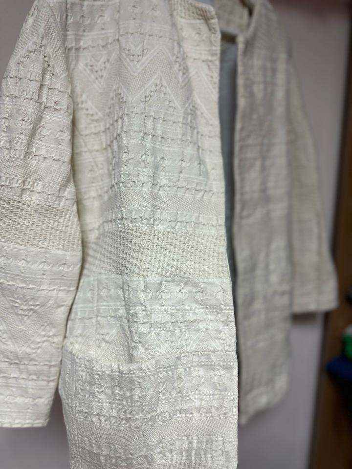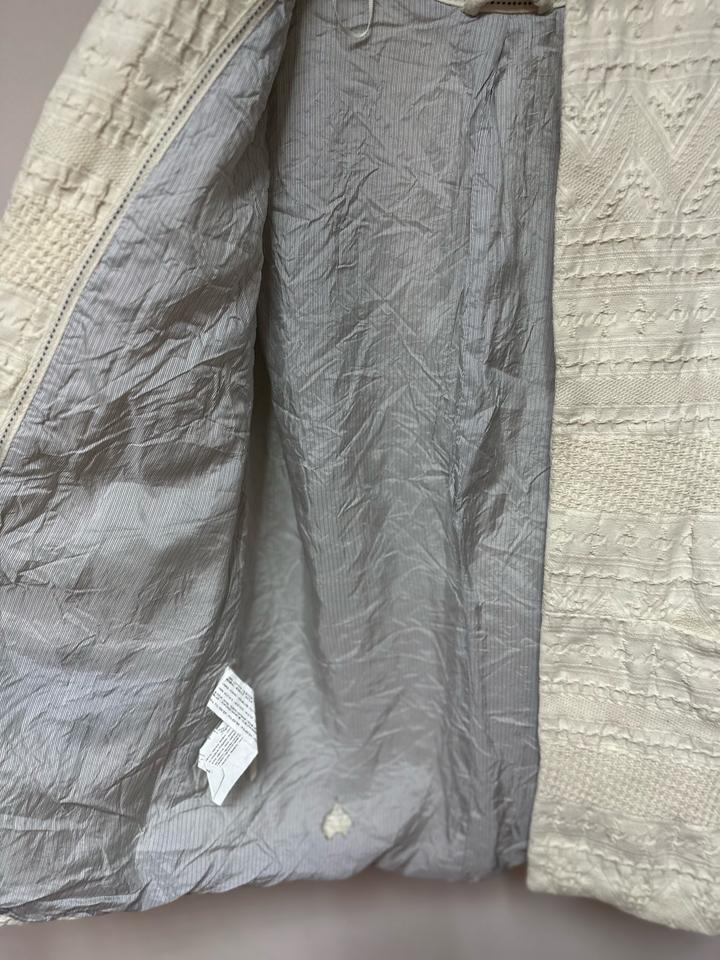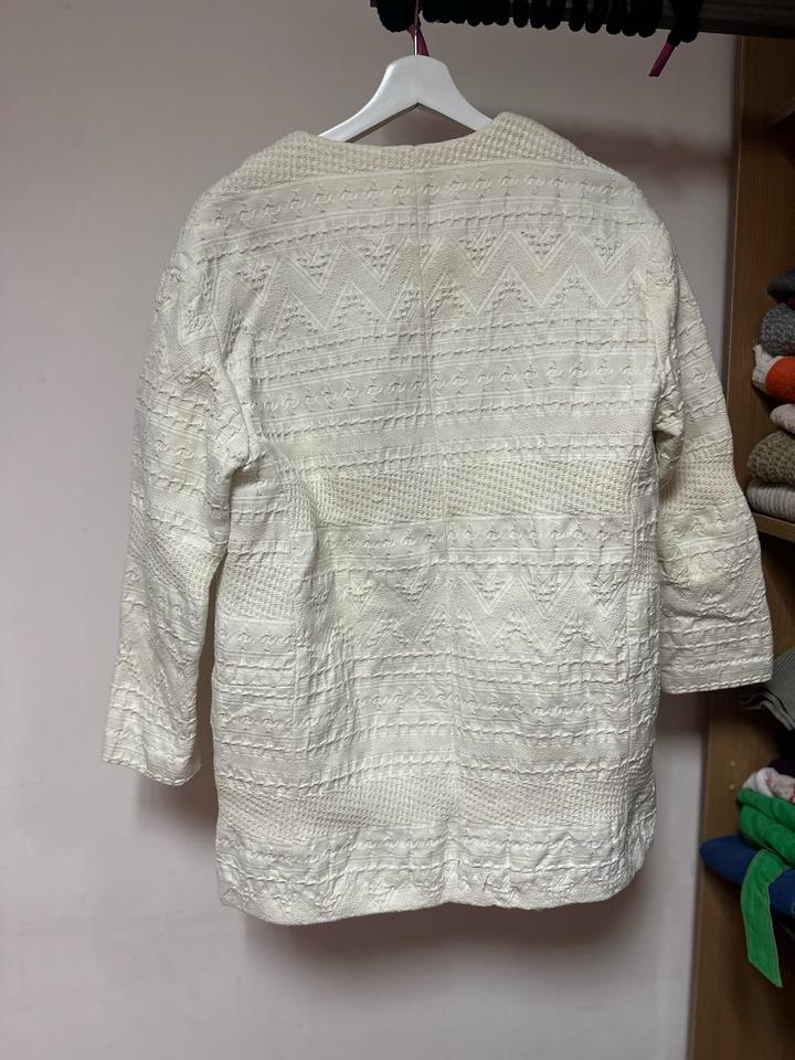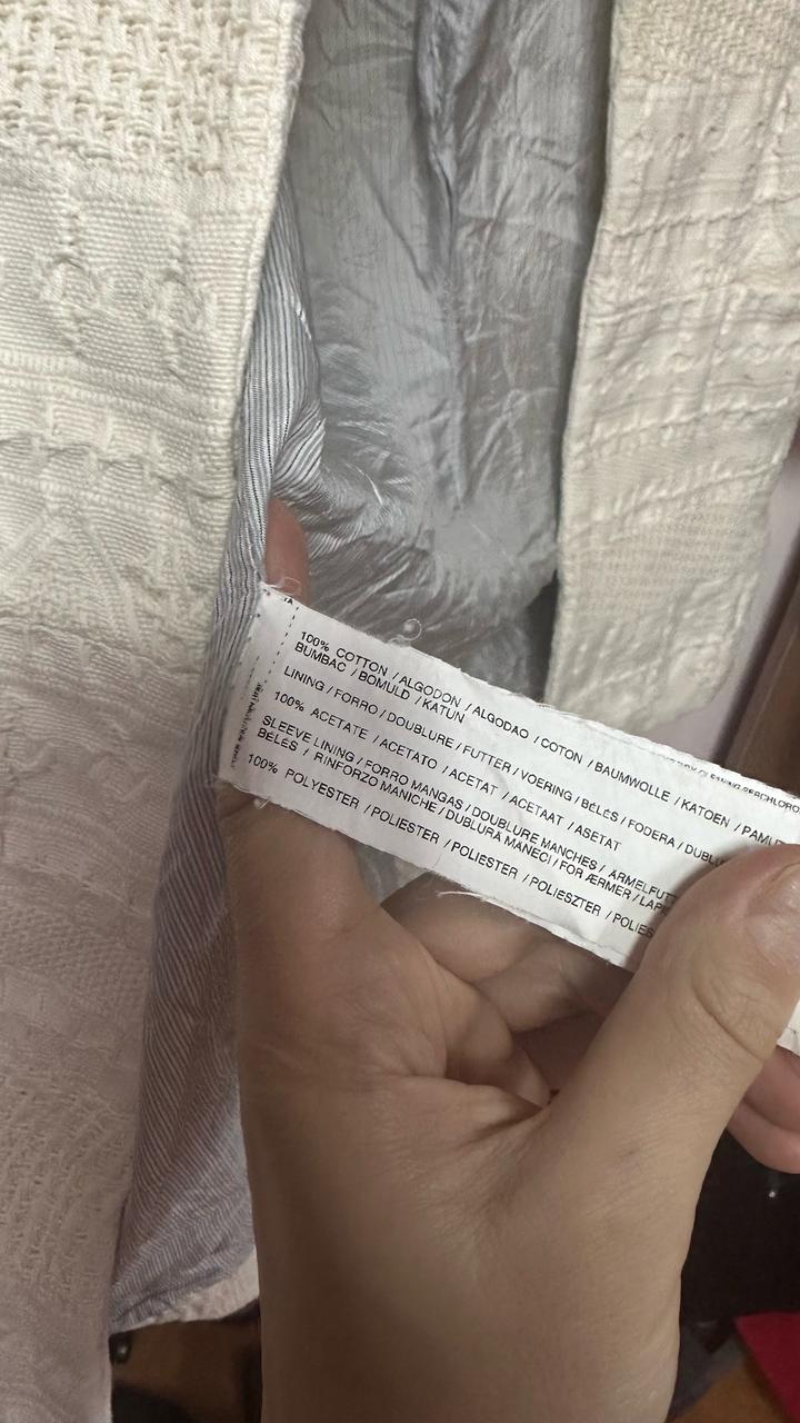 Стильный жакет Mango Suit Collection в нежном кремовом оттенке. Фактурная ткань с интересным рельефным узором делает модель элегантной и необычной. Лаконичный крой без застёжки — идеально для создания женственных и стильных образов. Отлично смотрится с платьями, джинсами и классическими брюками. ❗️Есть небольшой нюанс на подкладе, в остальном все идеально Артикул: 487441