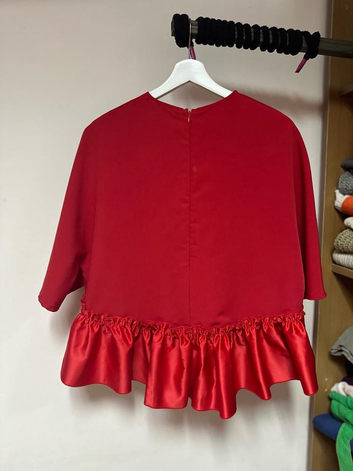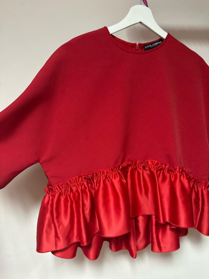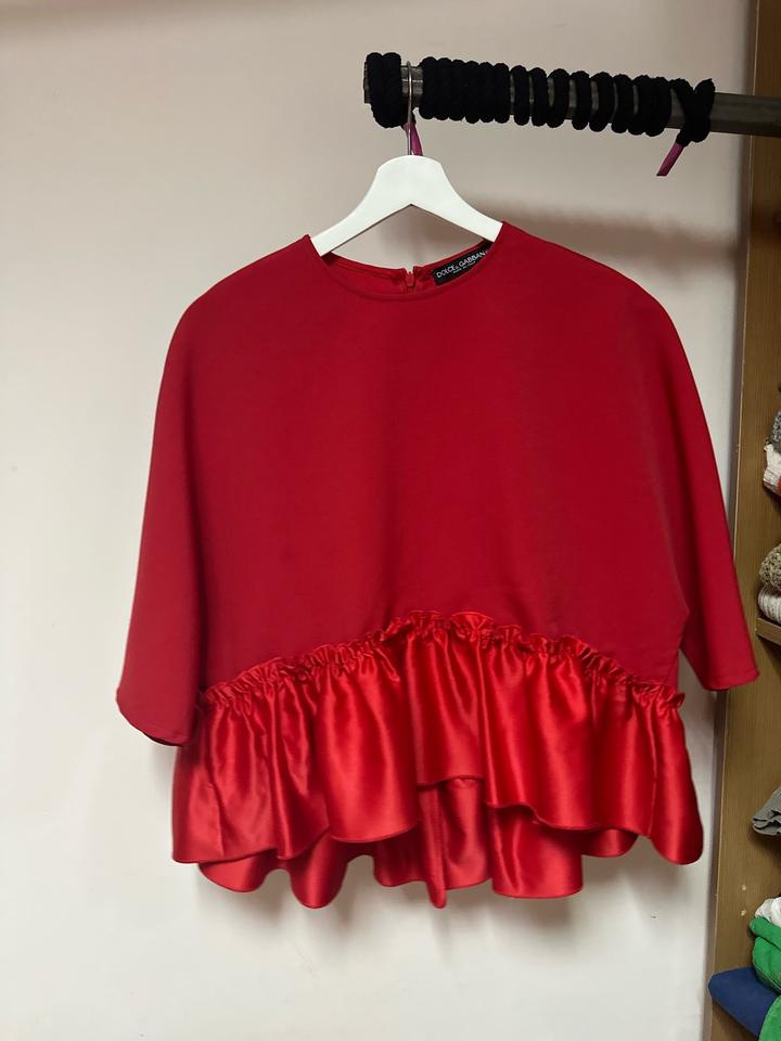 Яркий топ в эстетике Dolce & Gabbana в насыщенном красном цвете. Лаконичный верх и эффектная баска из гладкой ткани создают красивый силуэт и делают модель очень выразительной. Стильная вещь, которая легко станет акцентом образа — идеально с брюками, юбками или джинсами. Подойдет на размер M, L, XL - в зависимости от желаемой посадки Артикул: 487511