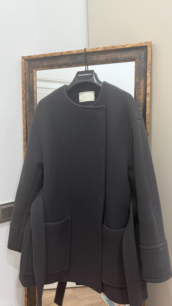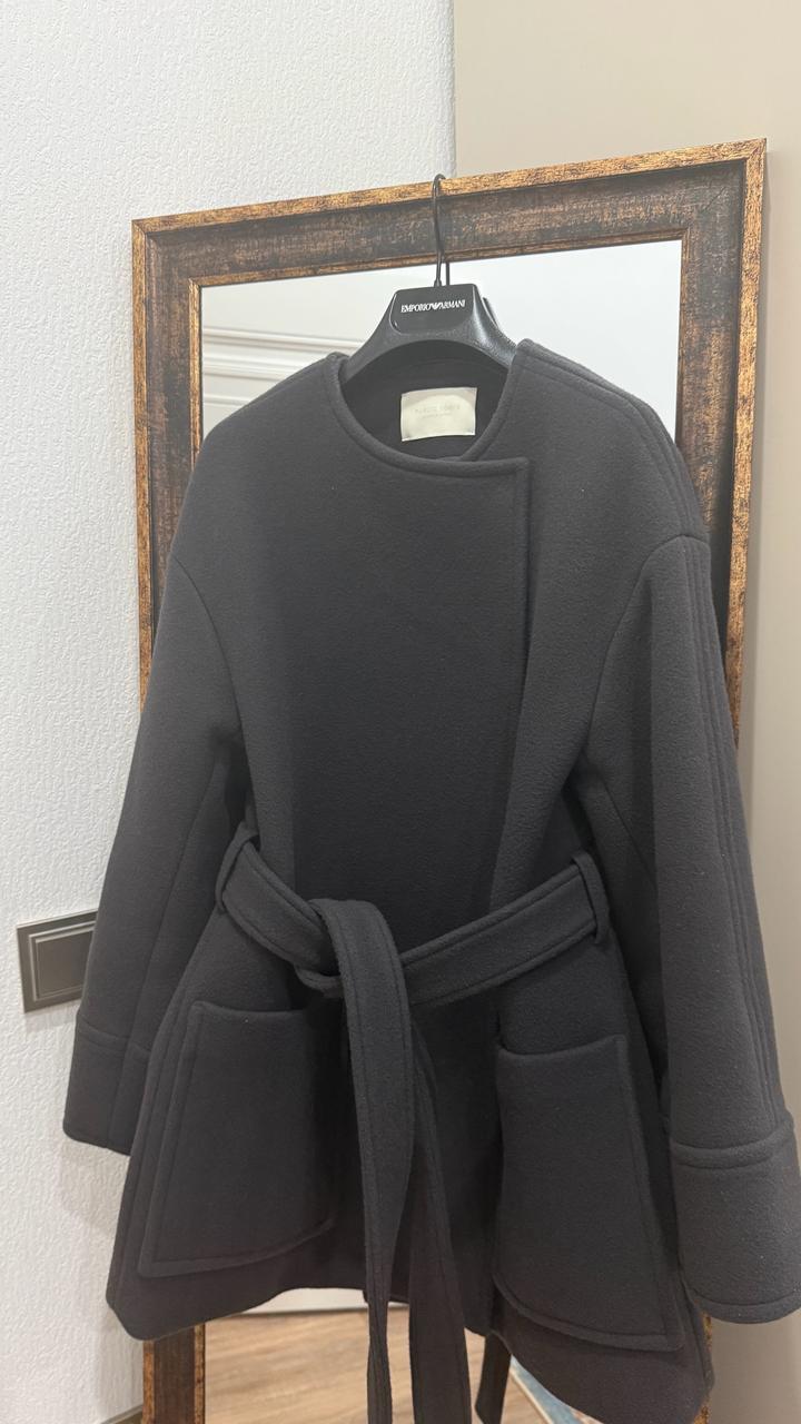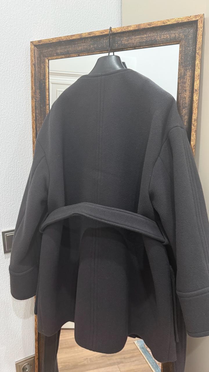 Пальто укороченное с поясом цвет темно серый в отличном состоянии пару раз на выход размер один Артикул: 487516