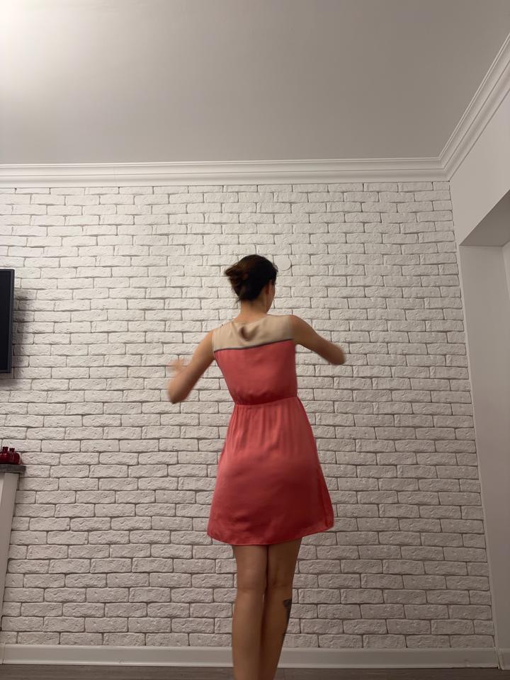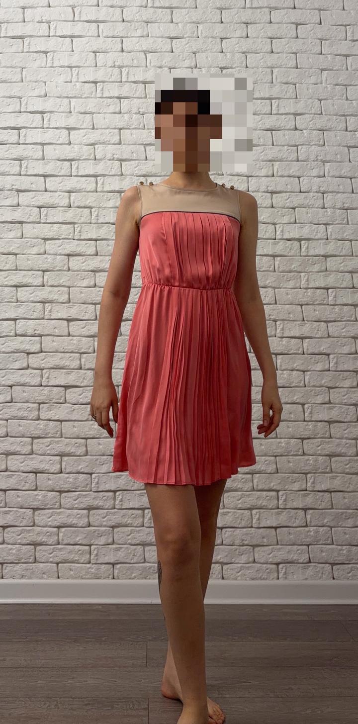 Тоненькое милое платье с плиссированной спереди юбкой Немного потертая фурнитура на плечах На 40-42 Не очень короткое, мой рост 172 Артикул: 487520