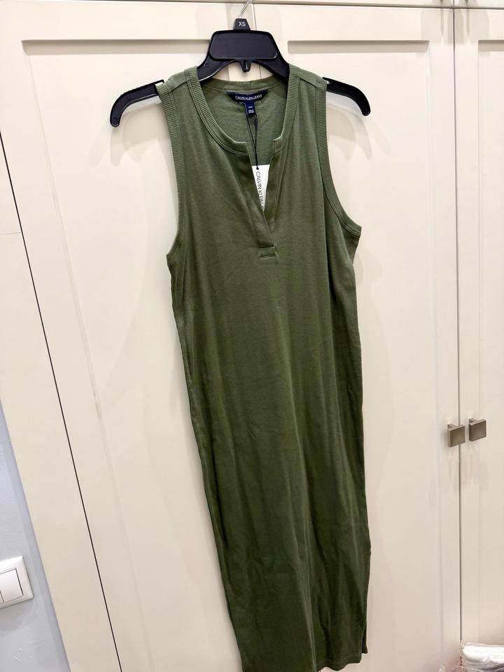 Платье трикотажное Calvin Klein. Цвет хаки. Размер S. Длинное Артикул: 487841