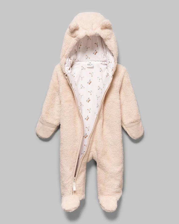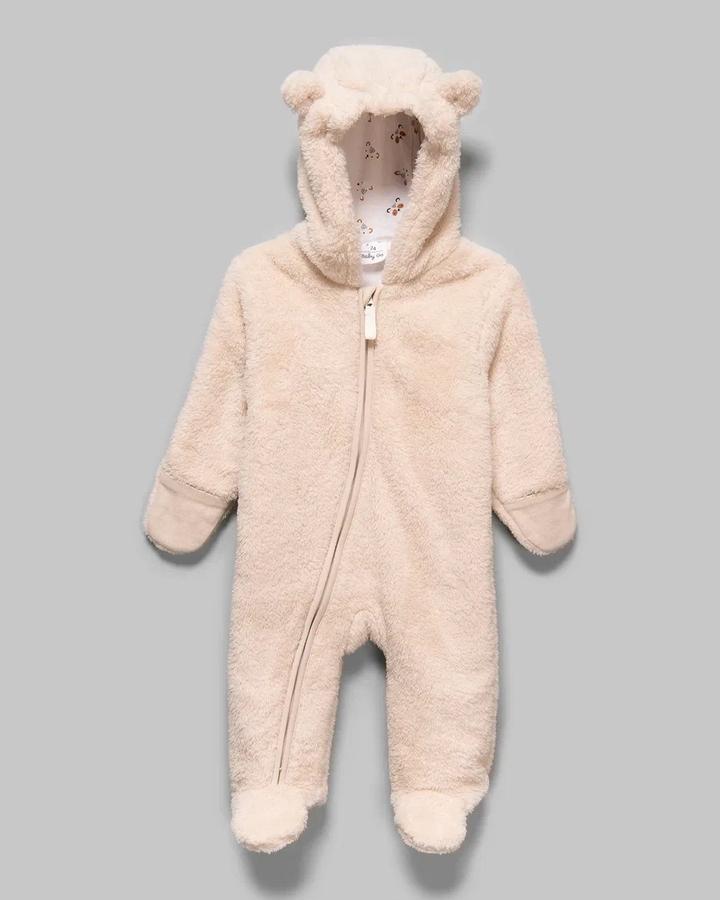 Плюшевый комбинезон BabyGo бежевого цвета, с ушками на капюшоне 7474