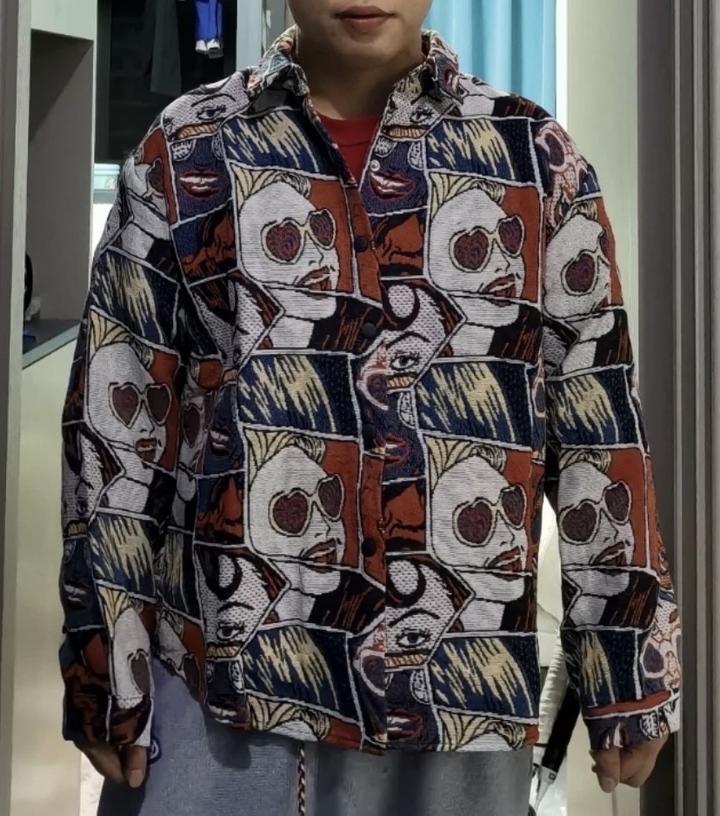 джинсовая рубашка с классным трендовым принтом унисекс подходит под джинсы и брюки юбки Артикул: 487976