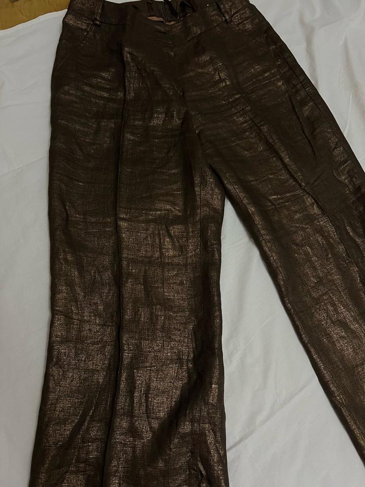 Брюки 100% лен. Фото не передает цвета. Они шоколадные с золотым отливом. Ни разу не был в носке. Германский бренд Артикул: 488003