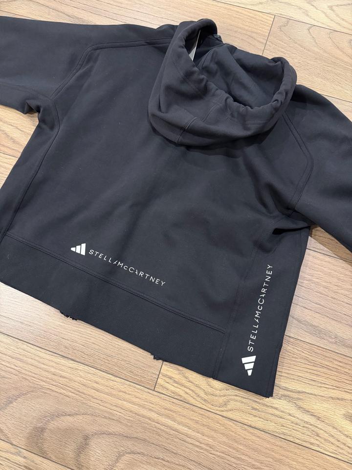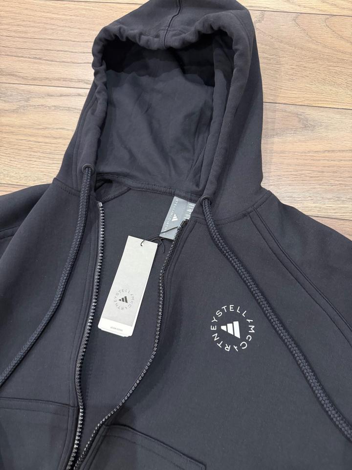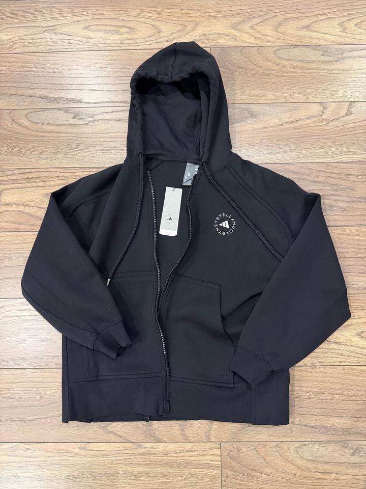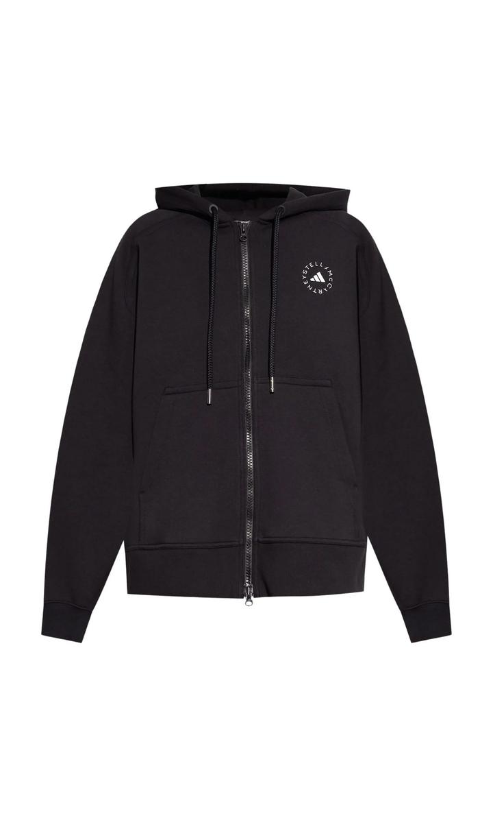 Черно-белая куртка на молнии с капюшоном от Adidas × Stella McCartney из органического хлопка, с логотипом на груди, карманами и манжетами в рубчик Артикул: 488073