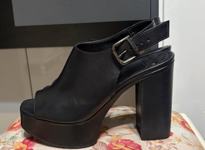 Натуральная кожа, удобная устойчивая платформа и высокий каблук. Очень комфортная колодка, красиво смотрятся на ноге. Указано 38,5, я ношу 38, мне как раз, в носки не много. Очень удобные. Артикул: 488108
