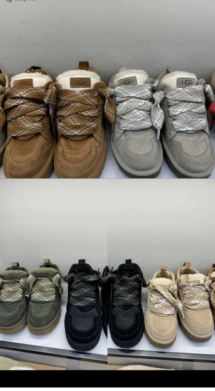 Теплые зимние кроссовки UGG с плотной овчиной внутри и комбинированным верхом из замши и текстиля. Мягкие, удобные, не скользят и отлично держат тепло — идеальны для холодного сезона. Размеры 36(светлый), 37 (черный). Заказывали для себя но не подошли по размеру. Покупала каждую по 39 тысяч. Артикул: 488133