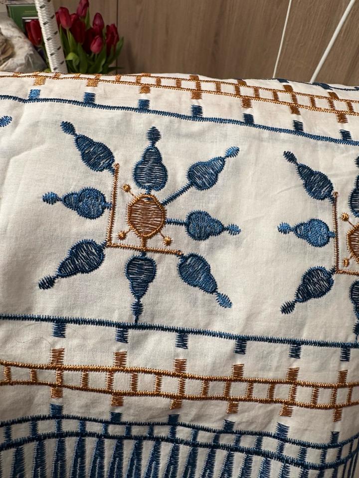 Летняя легкая юбка. Сделана в Италии. Очень красивая вышивка на ней, можно сочетать с разными цветами. Ткань немного просвечивает, но с грамотно подобранным бельем, думаю это не проблема. Этикетка была импульсивно снята при распаковке😆 но юбка ни разу не ношена, кроме как домашних примерок. Качество отличное. Артикул: 488139