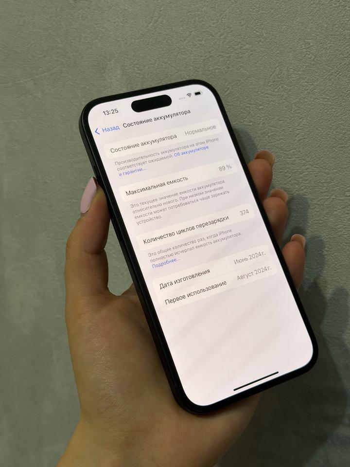 iPhone 15 128гб Максимальная емкость зарядки 89% Цикл 374 Корпус идеально Артикул: 488187